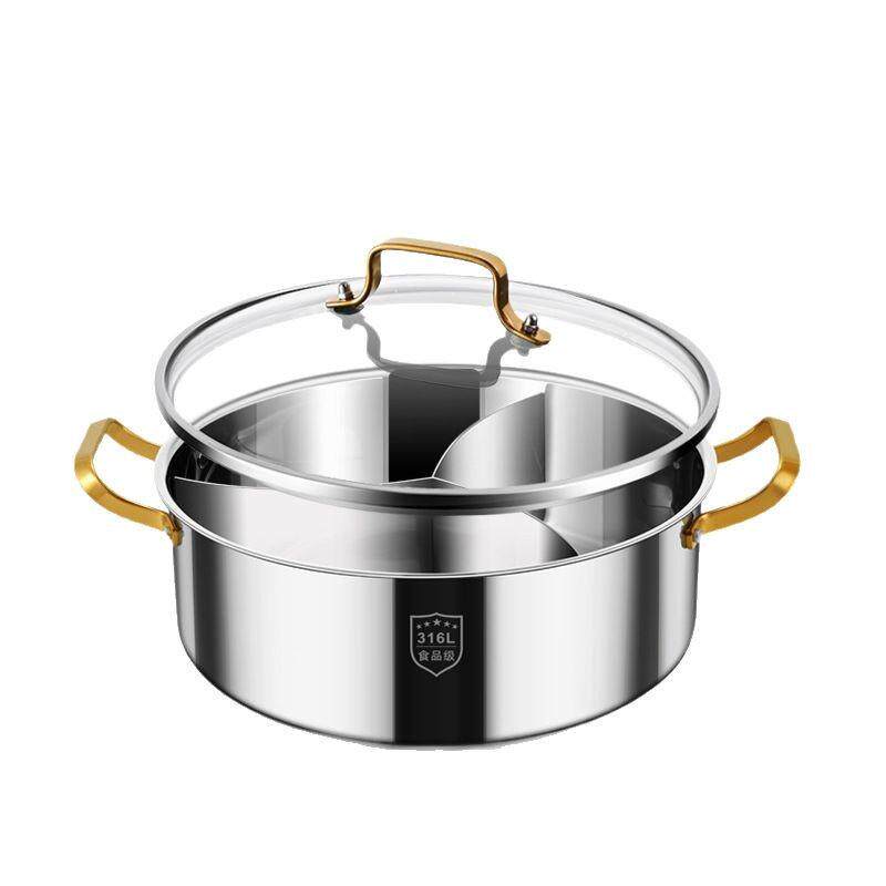 📚 鸳鸯锅火锅三格四宫格家用316不锈钢电磁炉专用大容量加厚火锅盆