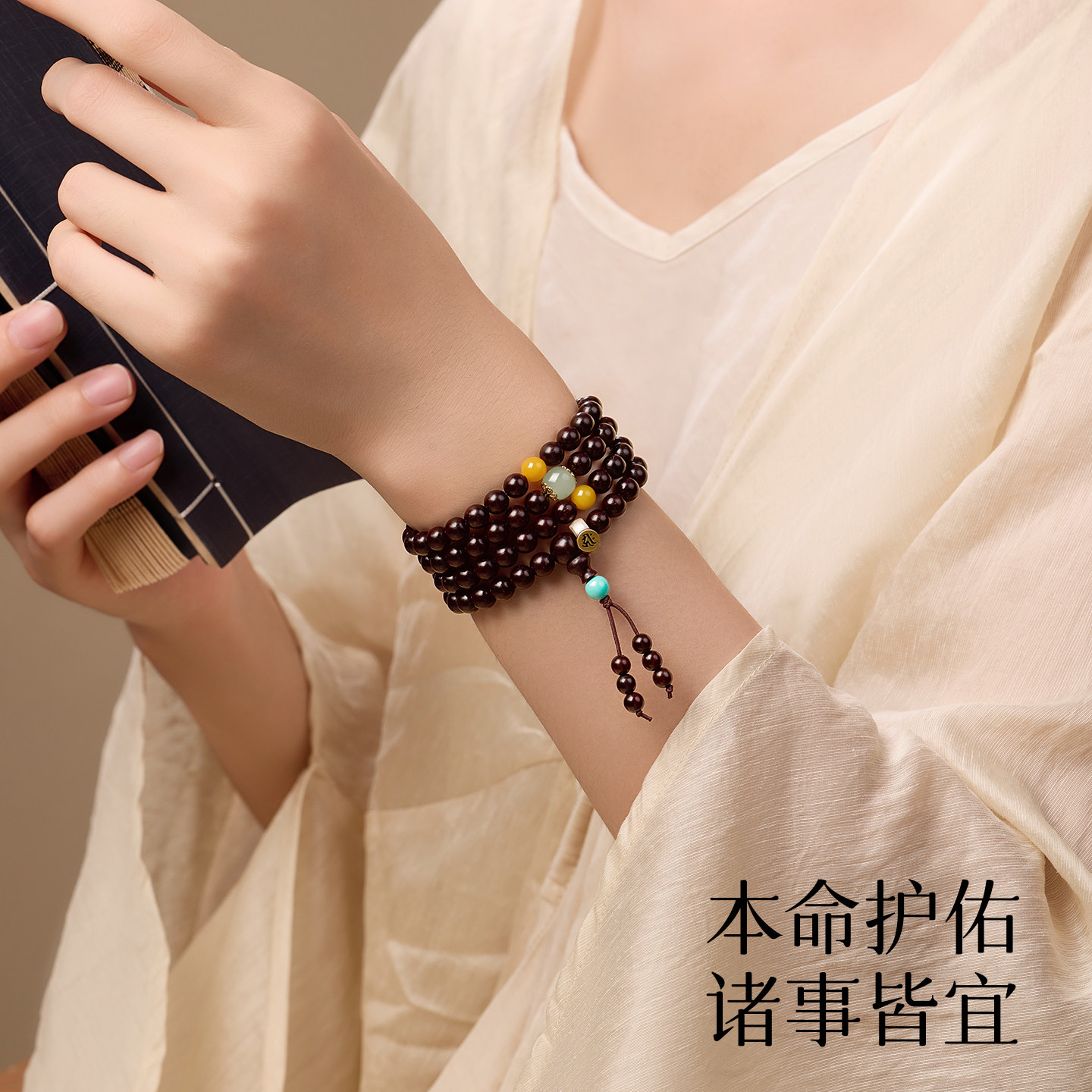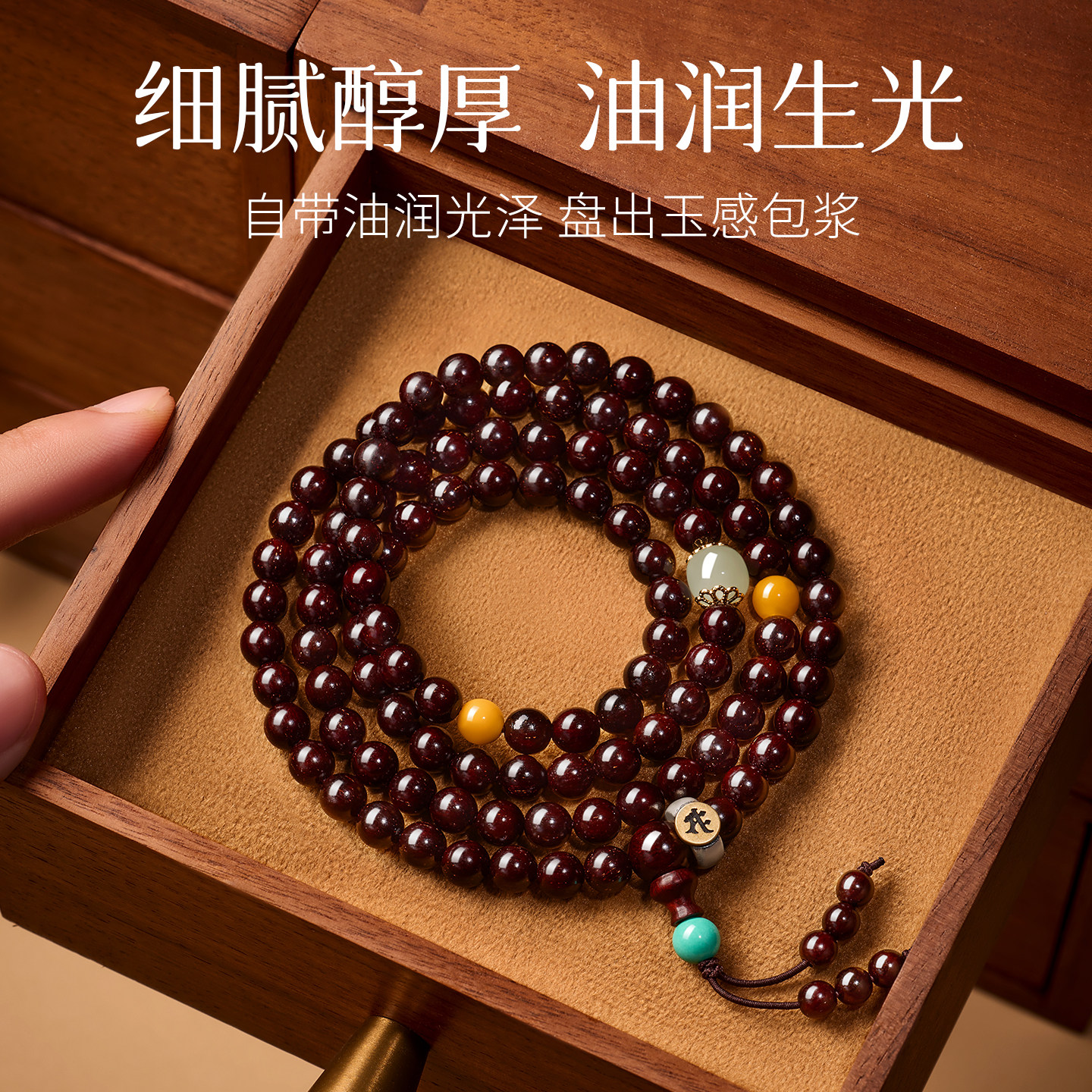 📚 庆祥泰天然金星小叶紫檀手串108颗男士官方旗舰店女印度真品文玩
