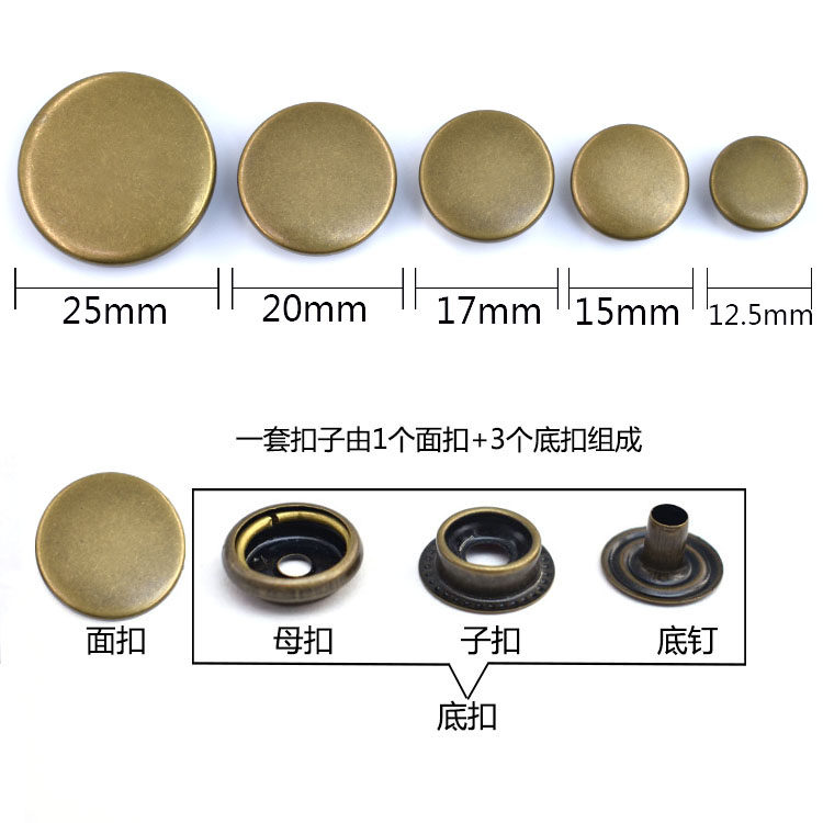 📚 金属四合扣羽绒棉服铜201按纽扣外套高档手工大白子母扣暗扣男女