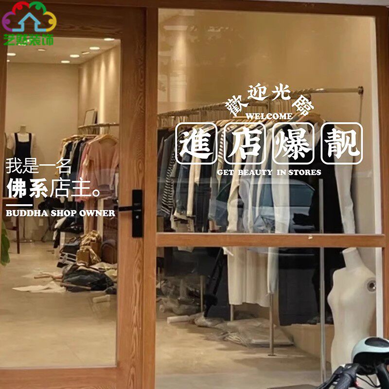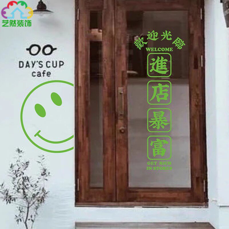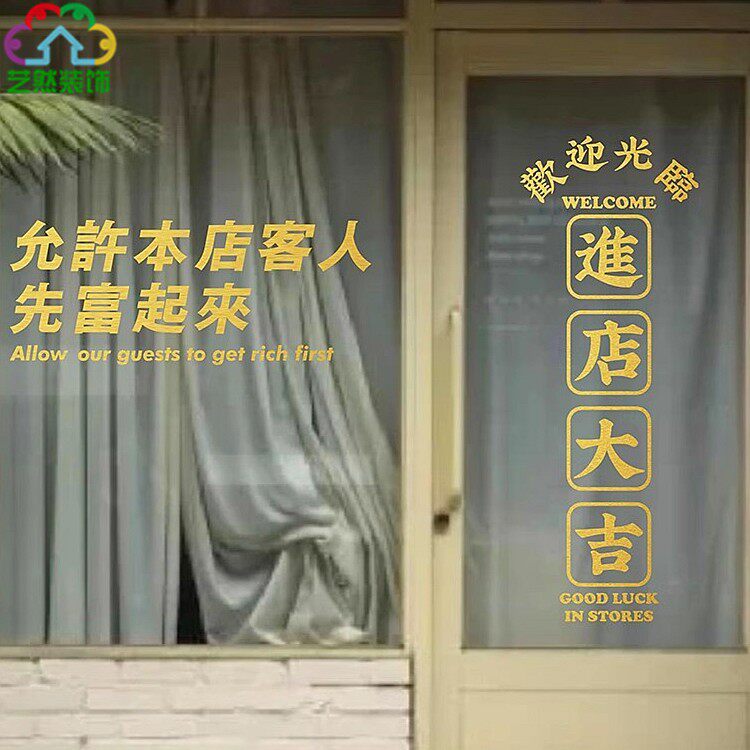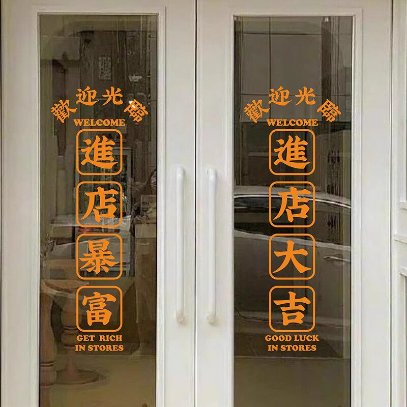 📚 创意进店暴富贴纸女装珠宝小吃零食饭馆网红店铺玻璃门墙贴画装饰