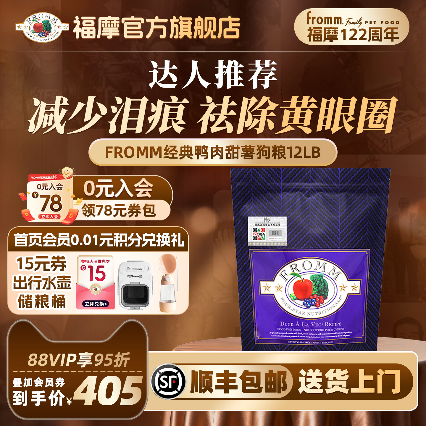 📚 【官方旗舰店】福摩FROMM经典系列鸭肉甜薯蔬果成幼犬狗粮5.4kg