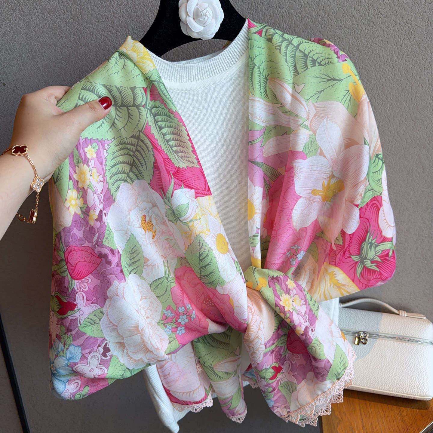 📚 月季浣溪沙法式浪漫蕾丝花边棉麻围巾女夏季薄款透气防晒显白披肩