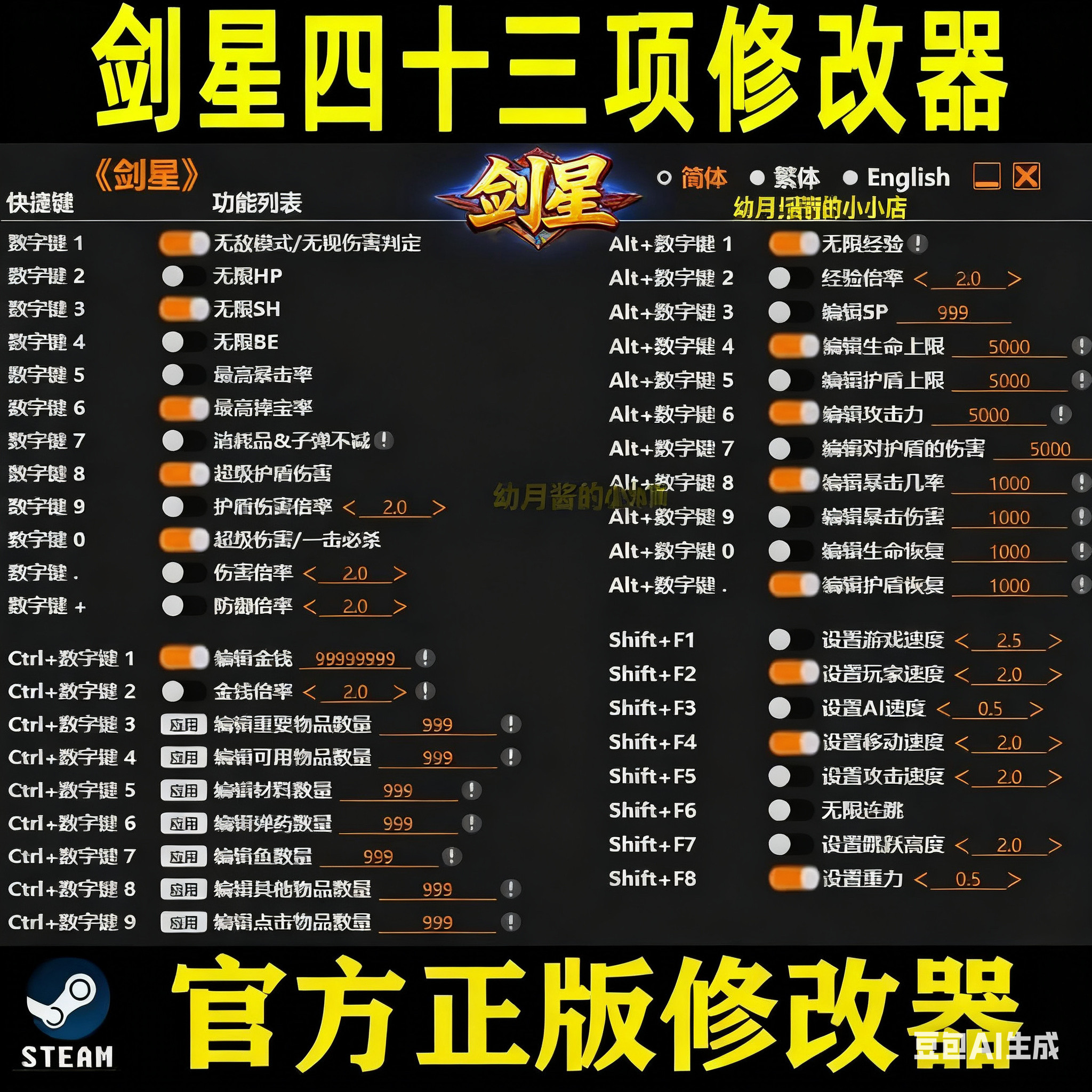 📚 剑星修改器 Steam辅助epic电脑正版工具 多项修改自动发货