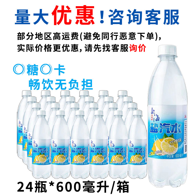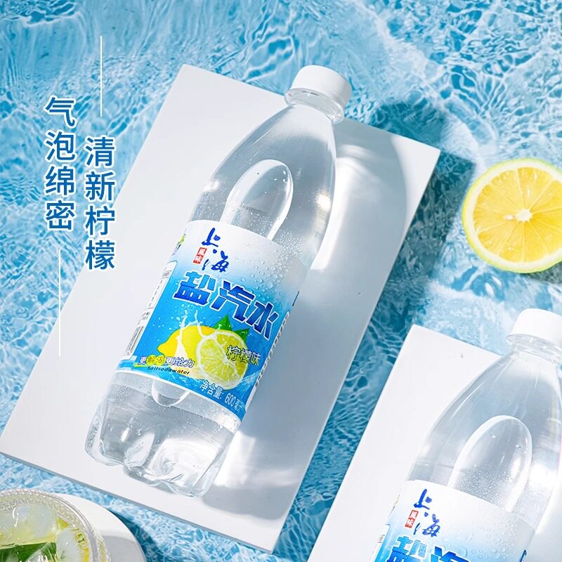 📚 上海盐汽水柠檬味600mlX24瓶一整箱解渴无糖碳酸气泡饮料促销团购