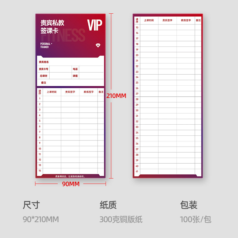 📚 贵宾私教签课卡VIP会员充值明细记录卡学员课程消费项目次数定做