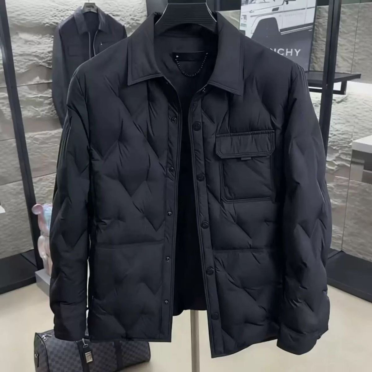 📚 男士冬季新款轻薄棉服百搭拼接翻领保暖时尚外套夹克商务休闲外衣