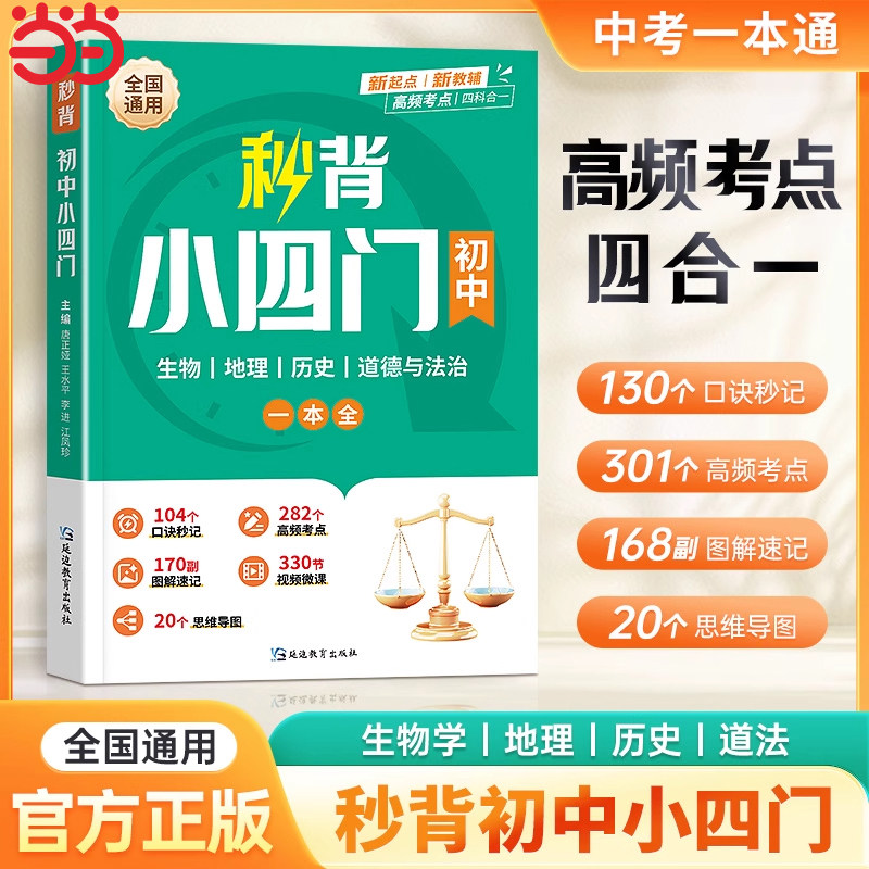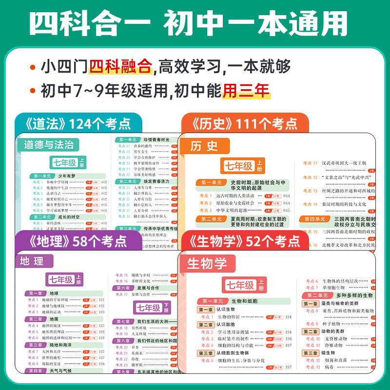 📚 当当网 秒解初中小四门必背知识点大三门七八九年级秒记小四门一本通英语核心词汇口诀妙记必背归纳总结知识清单政治历史生物地理