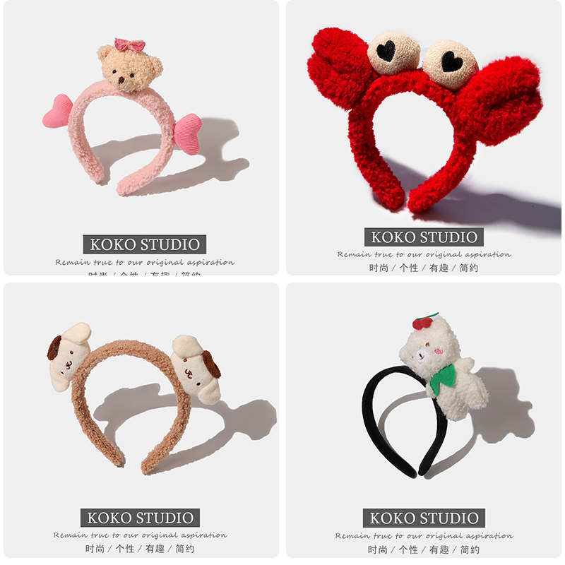 📚 卡通可爱超萌搞怪萝卜洗脸螃蟹发箍束发带女网红发卡头箍简约头饰