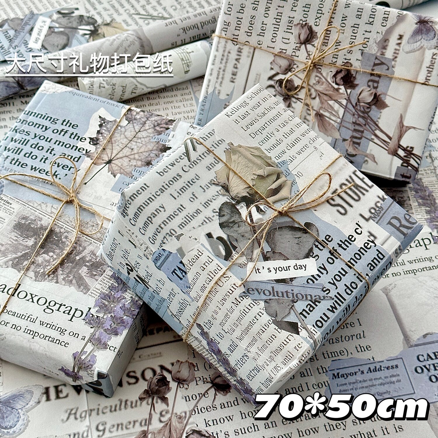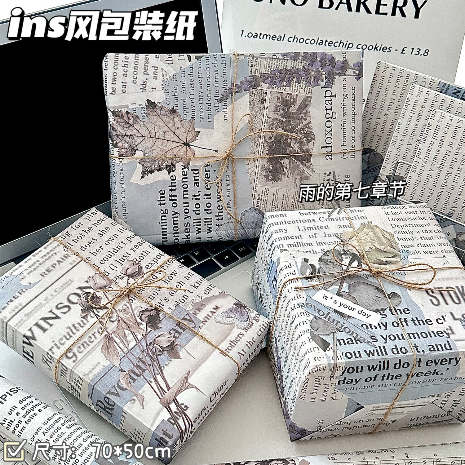 📚 爆款复古英文报纸包装纸原创ins风高颜值大尺寸节日送礼物英伦风印花包装花束包装纸材料