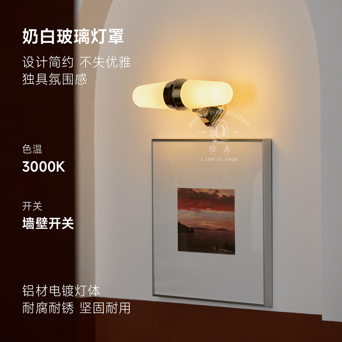 📚 灯岛 复古玻璃双头壁灯中古包豪斯客厅卧室走廊玄关卫生间镜前灯