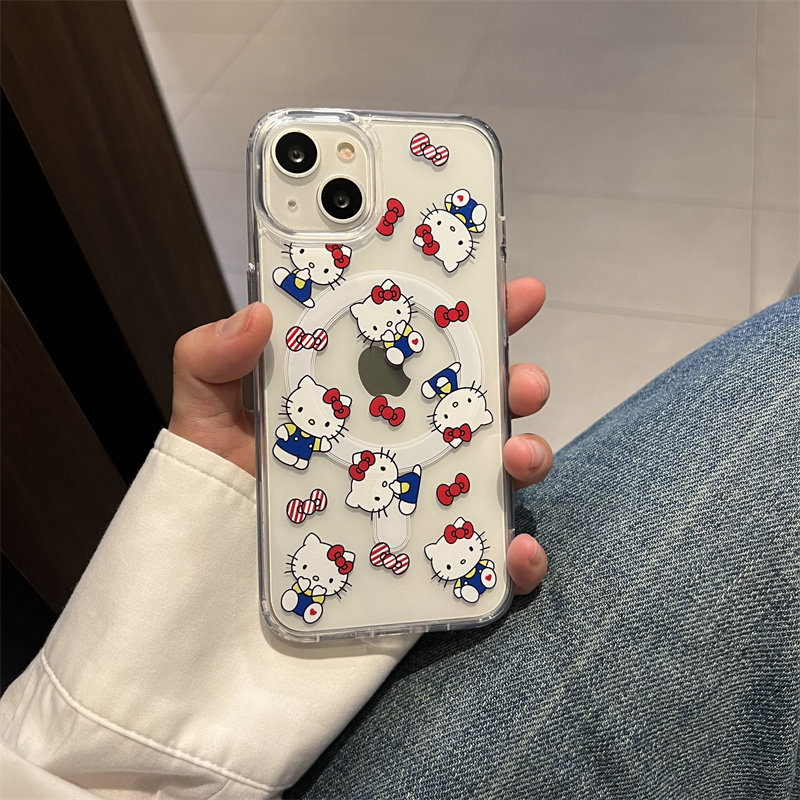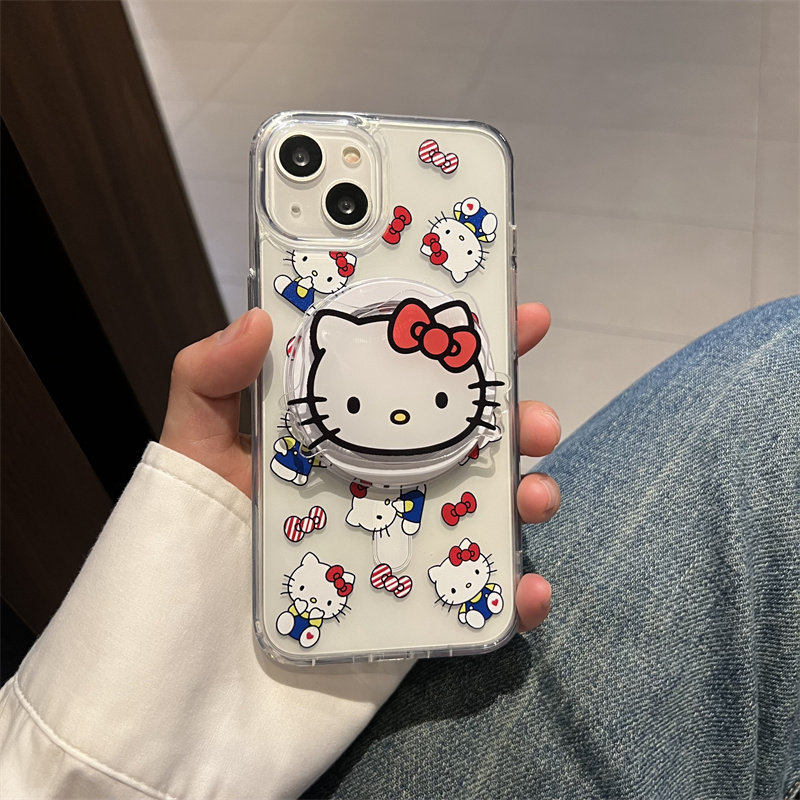 📚 爱珀客满屏KT猫磁吸支架适用iPhone17proMax手机壳苹果15pro个性卡通14Pro创意13亚克力16promax软边12硬壳