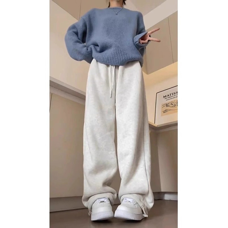 📚 重磅加厚羊羔绒裤子男女冬季高个子垂感直筒卫裤痞帅高级感镰刀裤
