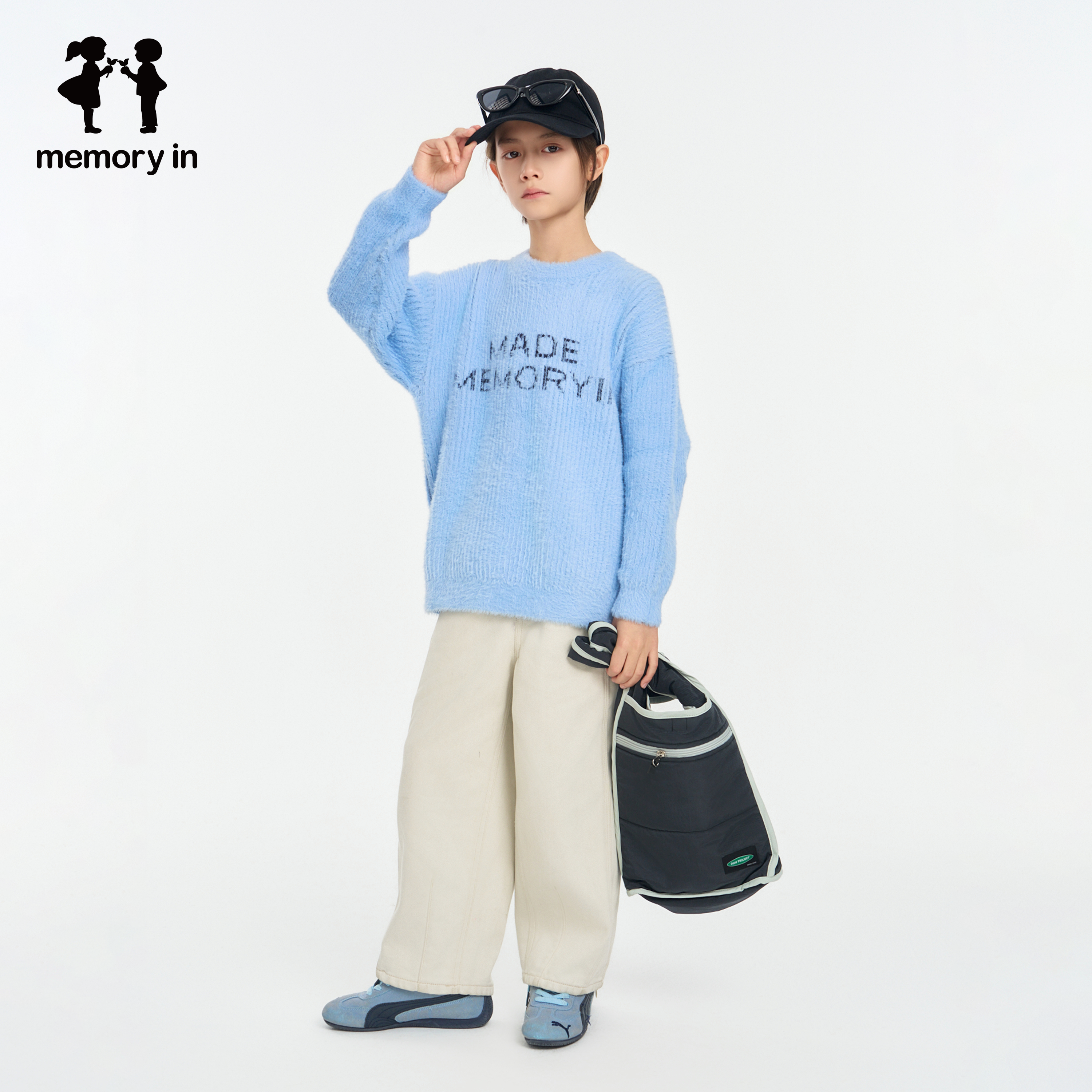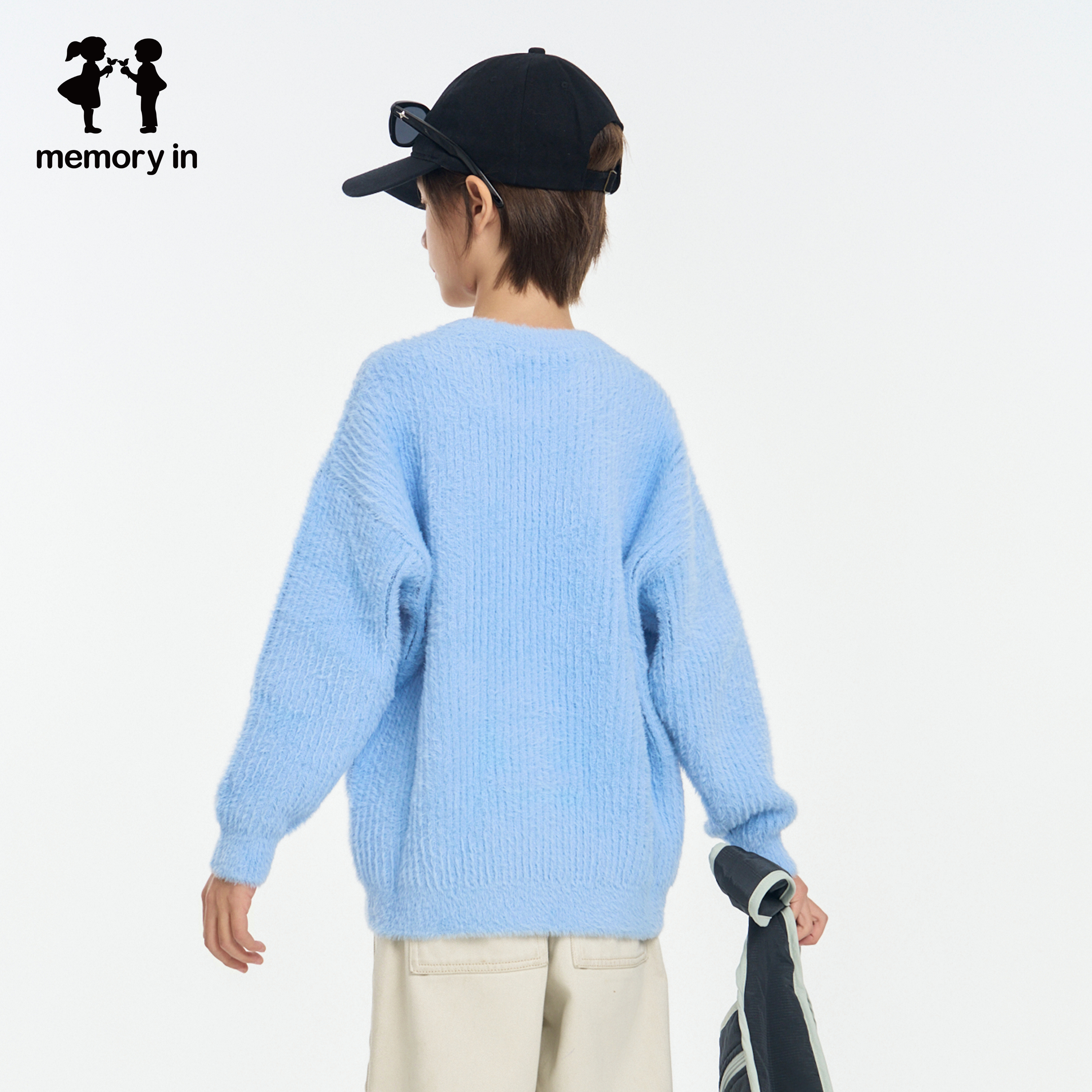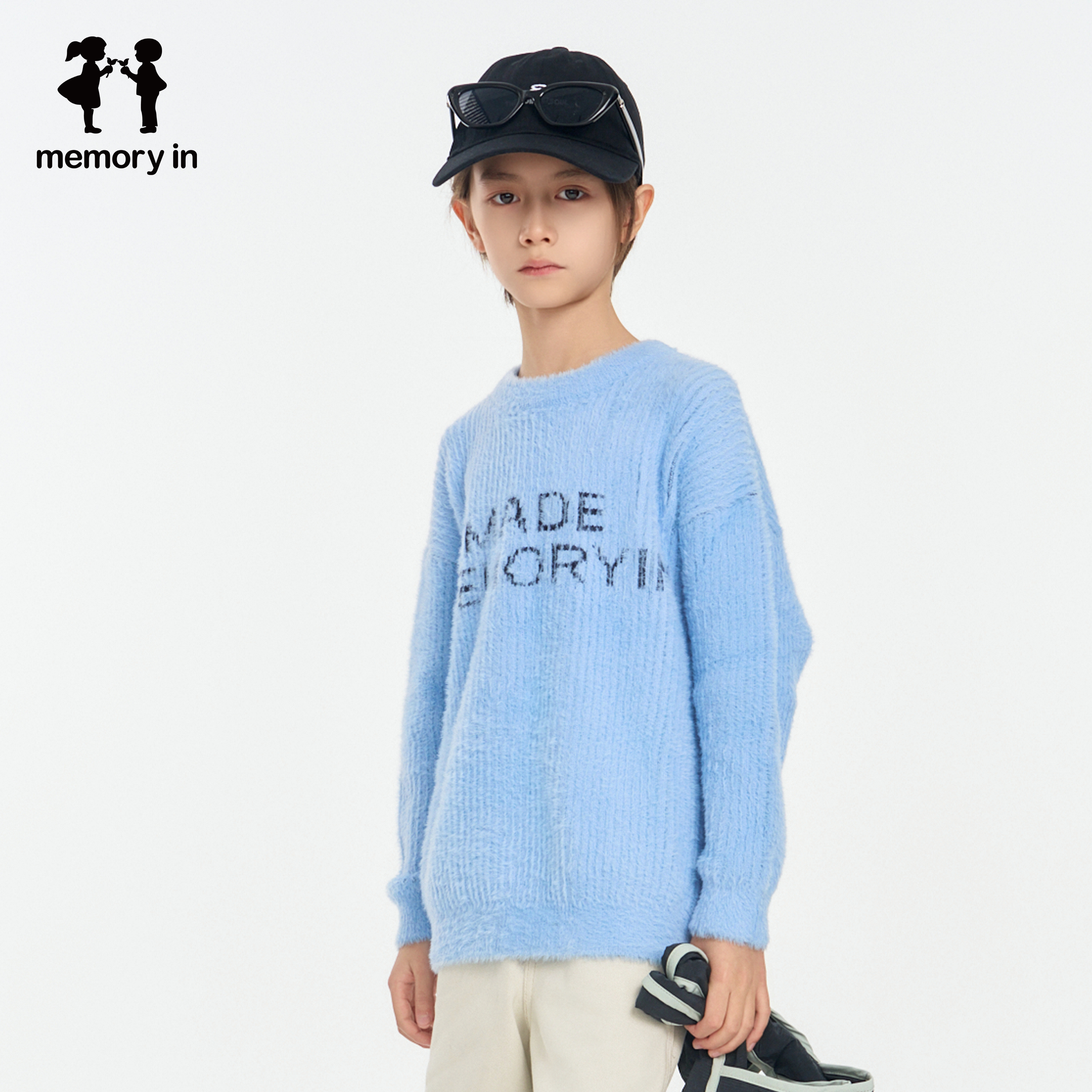 📚 memoryin童装毛衣两个小朋友落肩圆领简约百搭字母印花毛衫