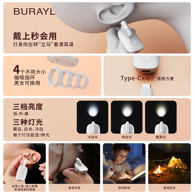 📚 家用挖耳朵采耳手指灯充电拇指灯掏耳发光耳灯大指环灯宝宝剪指甲