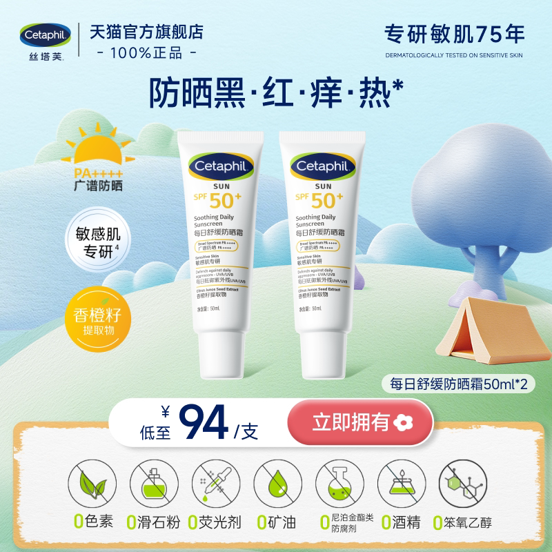 📚 丝塔芙防晒乳霜SPF50+官方旗舰店敏感肌抵御光老化清爽不油腻男女