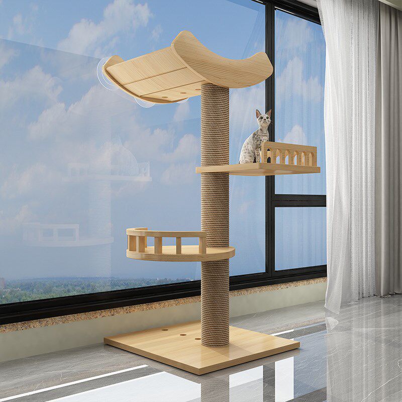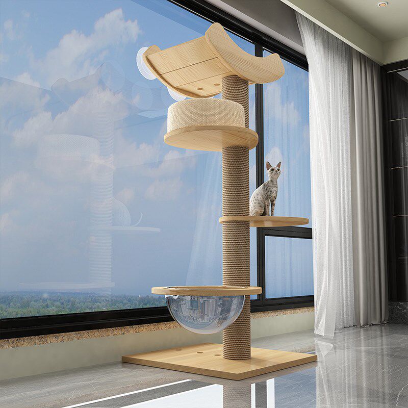 📚 吸盘猫爬架窗户猫跳台免打孔玻璃猫爬架猫窝一体通天柱飘窗猫吊床