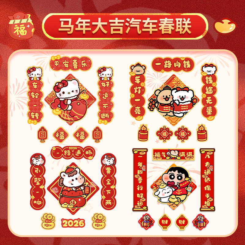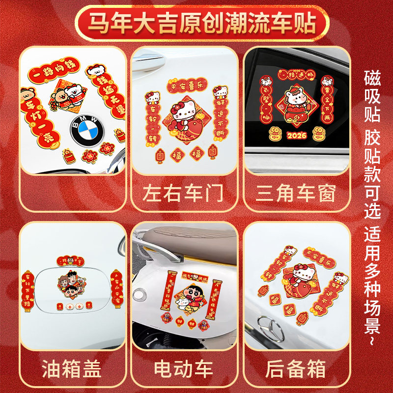 📚 2026新款马年磁吸汽车对联新年车贴车用春联福字吸铁石对联过春节