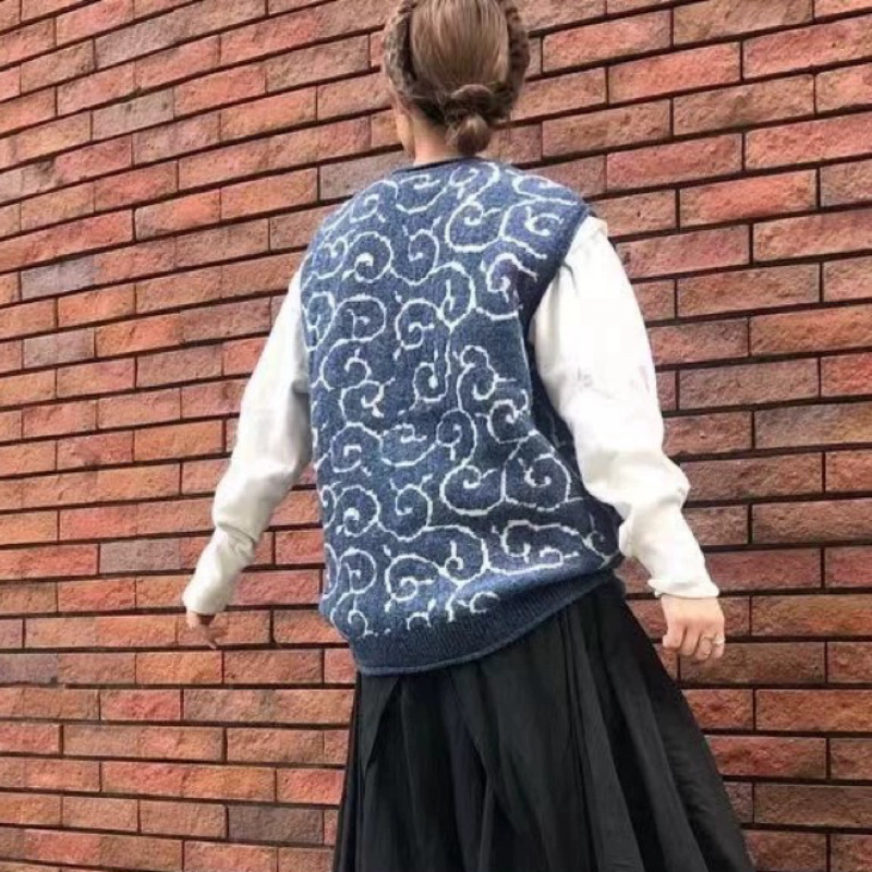 📚 lKapital平田和宏 复古毛衣 外搭针织马甲唐纹无袖图腾背心