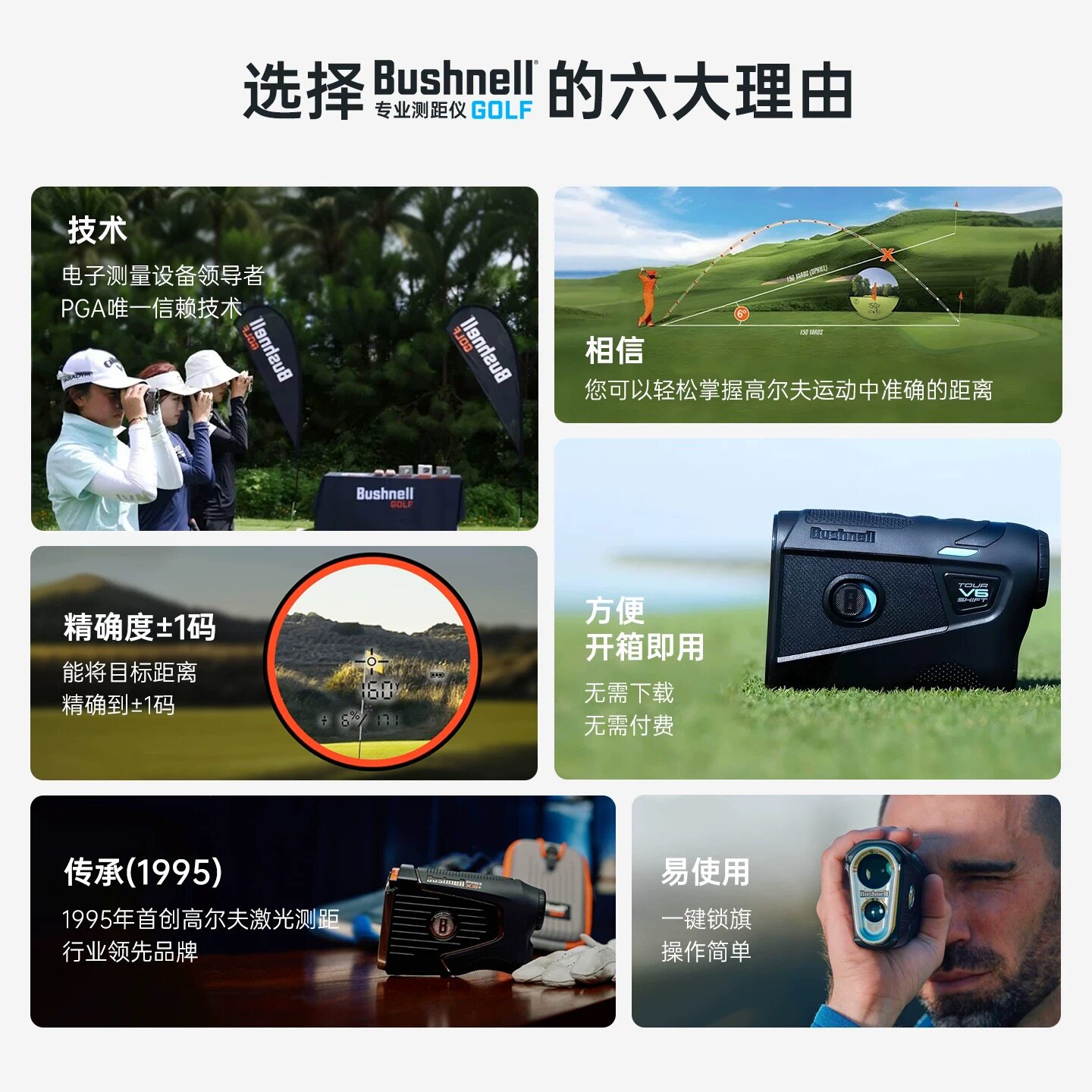 📚 Bushnell倍视能高尔夫测距仪博士能V6非坡度版激光望远镜电子球童