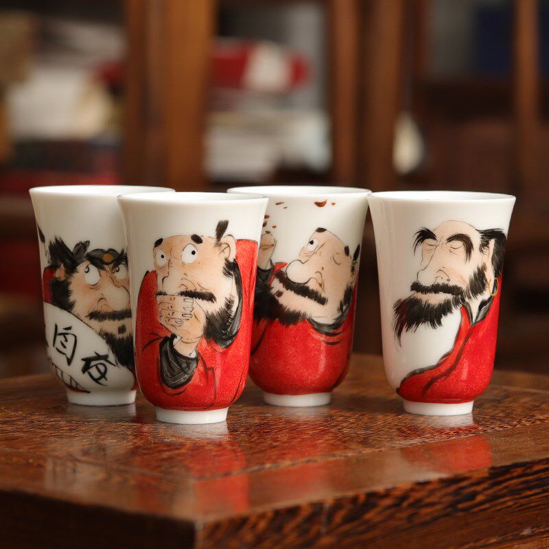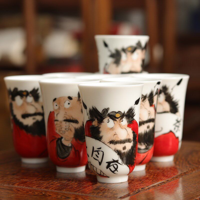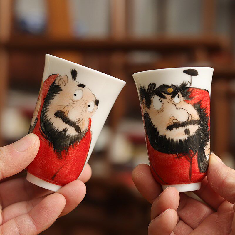 📚 手绘闻香杯端品茗手握杯茶具聚香钟馗个性陶瓷款玉兰茶杯