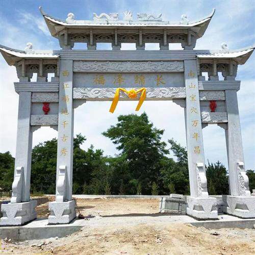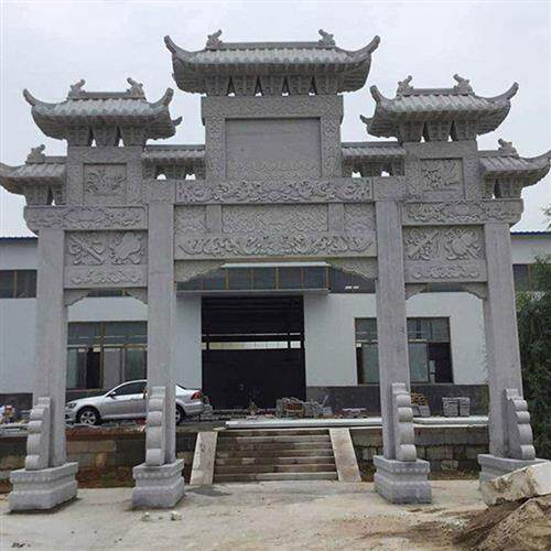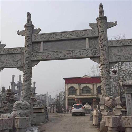 📚 石雕牌楼村口单门仿古门楼牌坊花岗岩大型三门牌坊寺院山门古建筑
