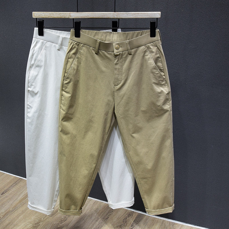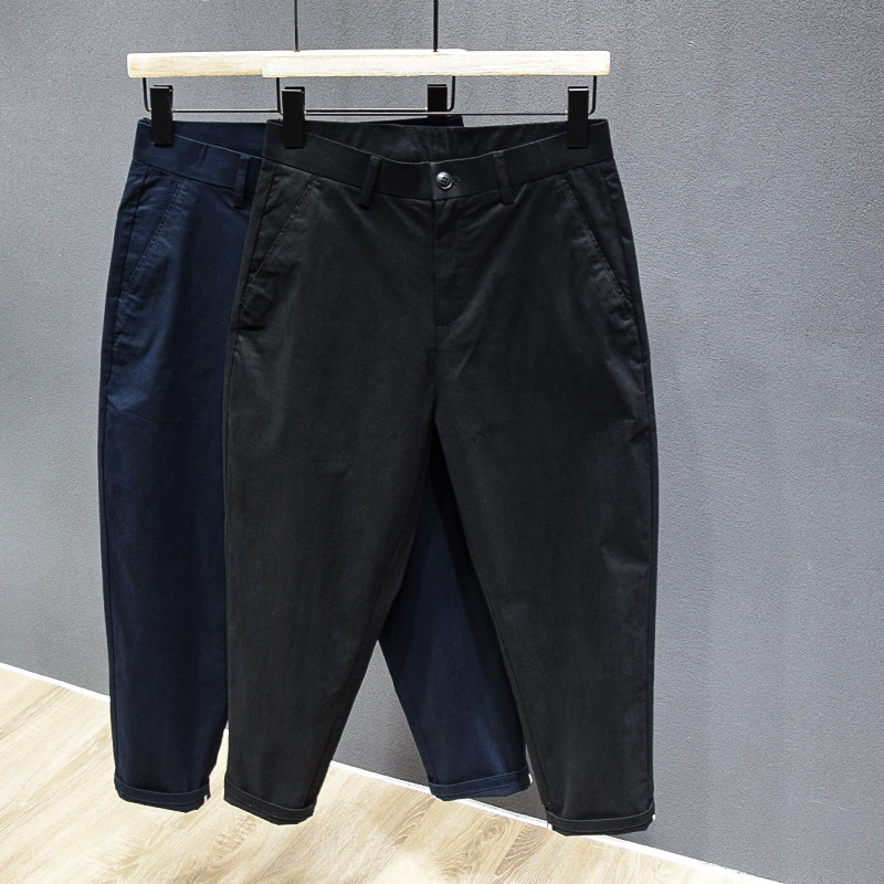 📚 纯棉质简约透气九分锥形休闲裤夏季薄款纯色百搭帅气短腿西裤男士