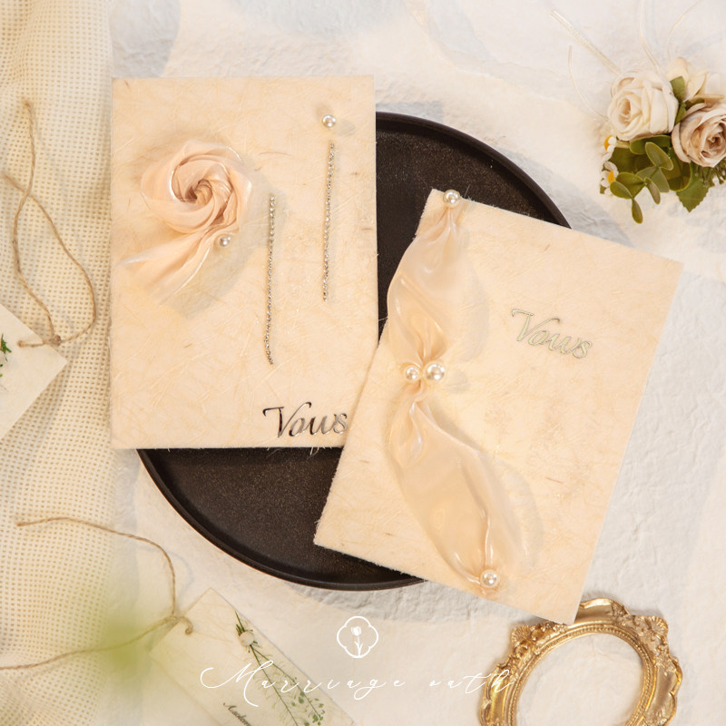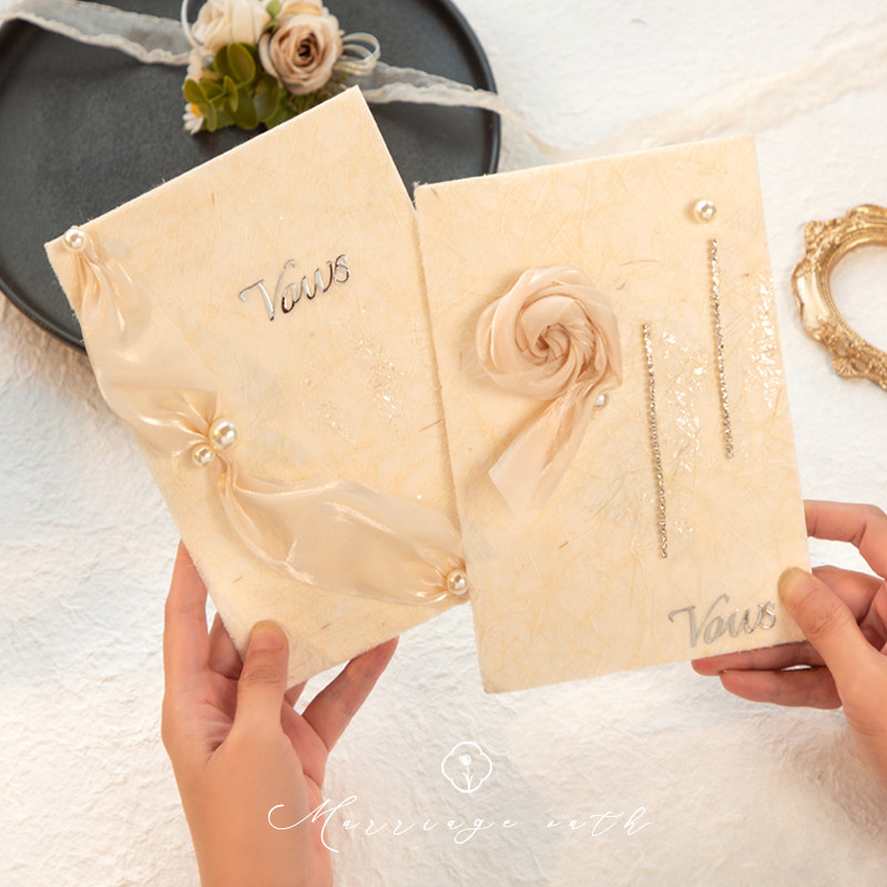 📚 婚礼誓言卡一对东巴纸玫瑰高级法式新郎新娘结婚宣誓可打印致辞本