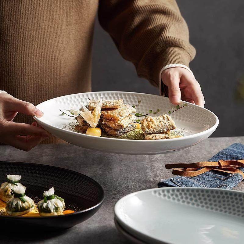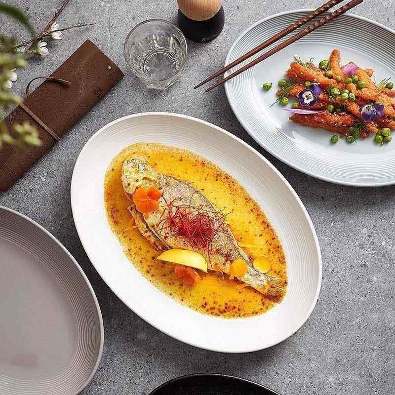 📚 2026新款专用椭圆形家用陶瓷大号16寸盘子鱼盘家用蒸鱼盘子高级感