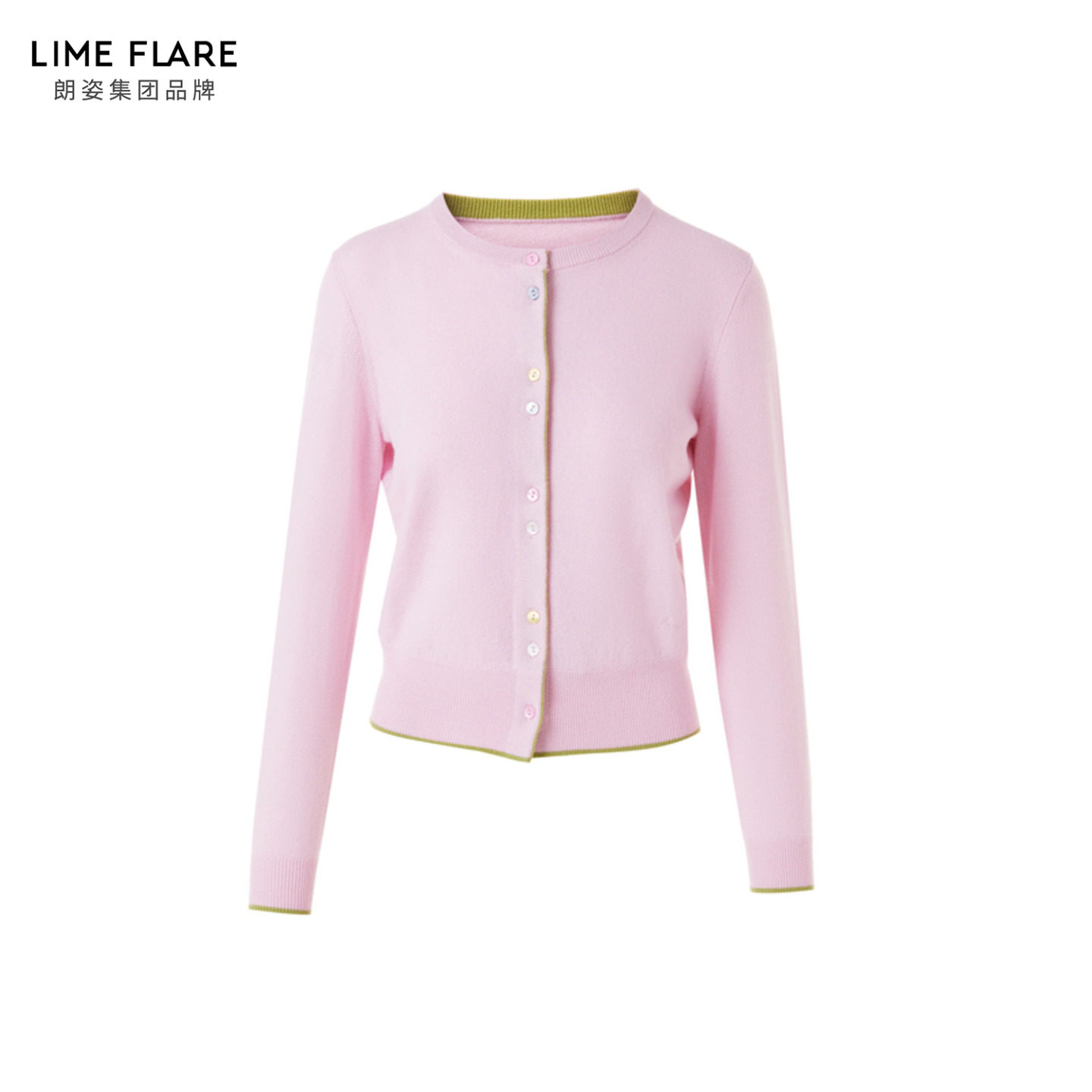 💥种草!朗姿莱茵福莱尔多巴胺撞色羊绒衫女法式甜美针织开衫上衣26春新款,券后价只需1380!💖