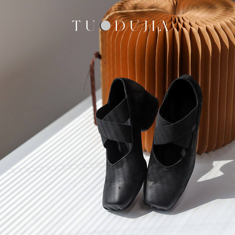 📚 脱毒家 胡桃夹子/方头粗跟芭蕾舞鞋复古真皮绑带浅口玛丽珍单鞋女