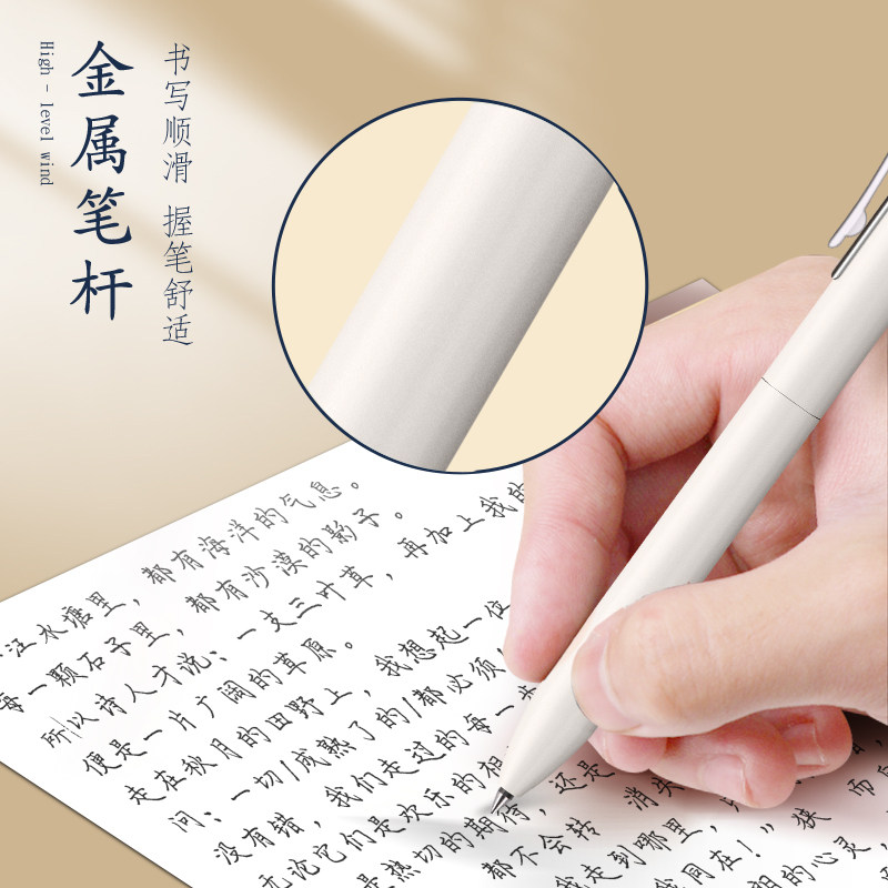 📚 得力中性笔金属笔杆定制logo刻字笔重手感黑色按动水笔黑笔水性笔商务高档签字笔男士圆珠笔订制笔高颜值