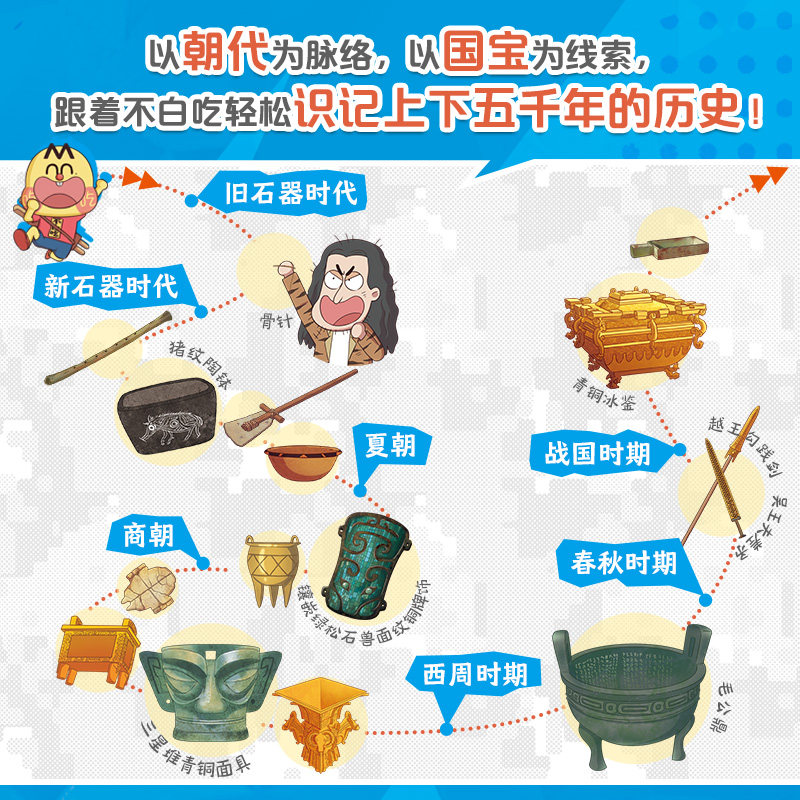 📚 不白吃漫画国宝大冒险全4册 史前夏朝商朝周朝秦朝西汉东汉南北朝 我是不白吃著 文物国宝历史事件 同步课堂知识 儿童历史漫画书