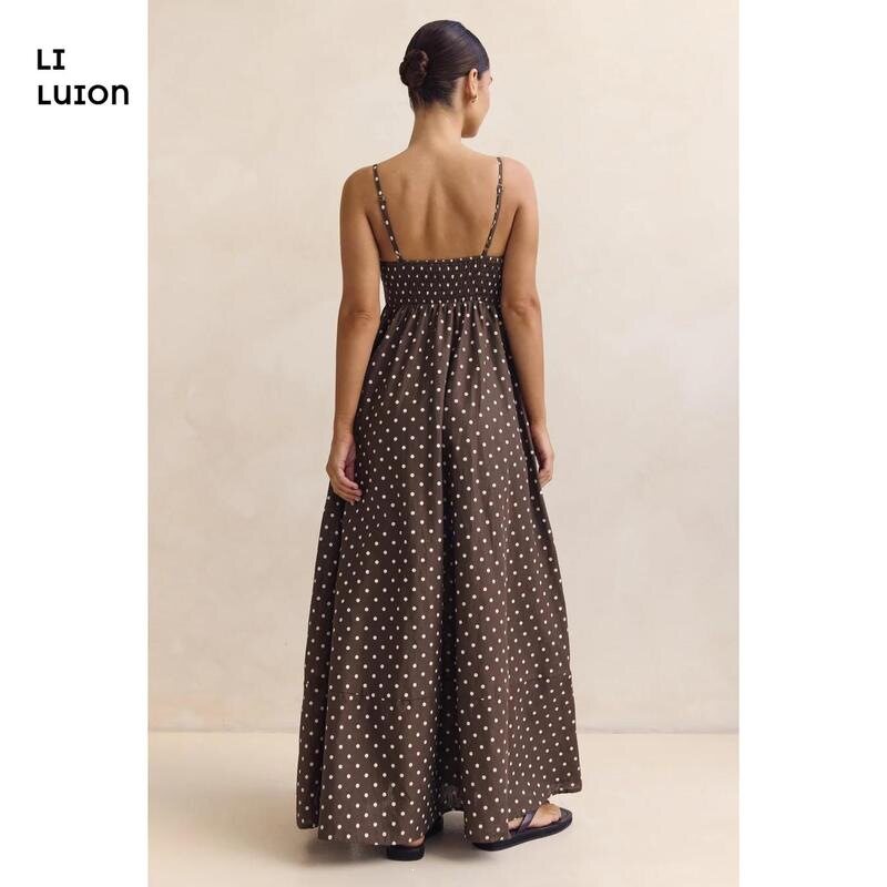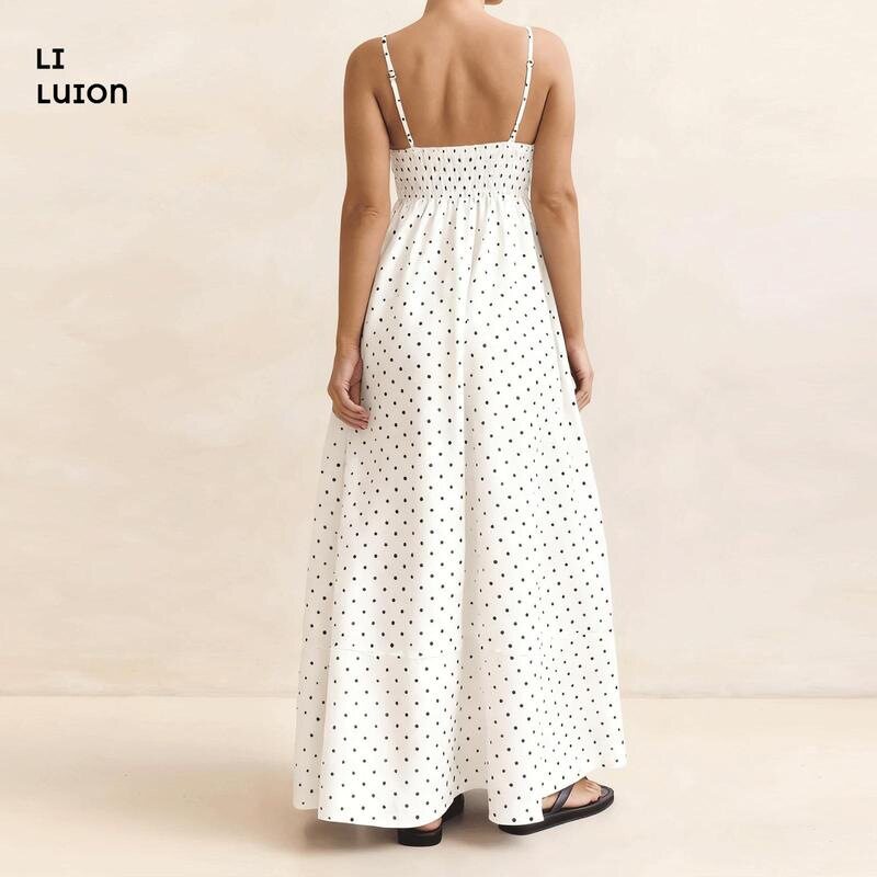 📚 Women Polka Dot Dress Backless Spaghetti Strap Sundress