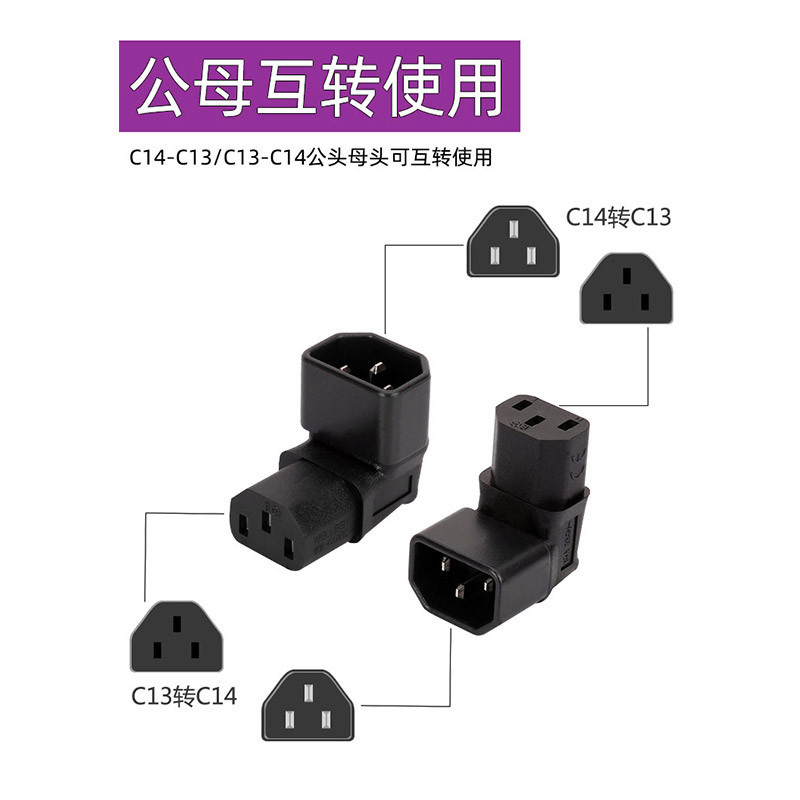 📚 品字电源公母转换插头左右上下侧弯转接头电器电饭煲微波炉烤炉用
