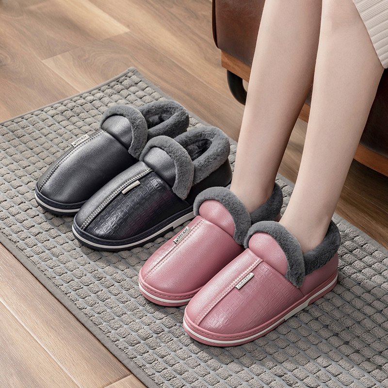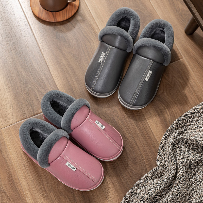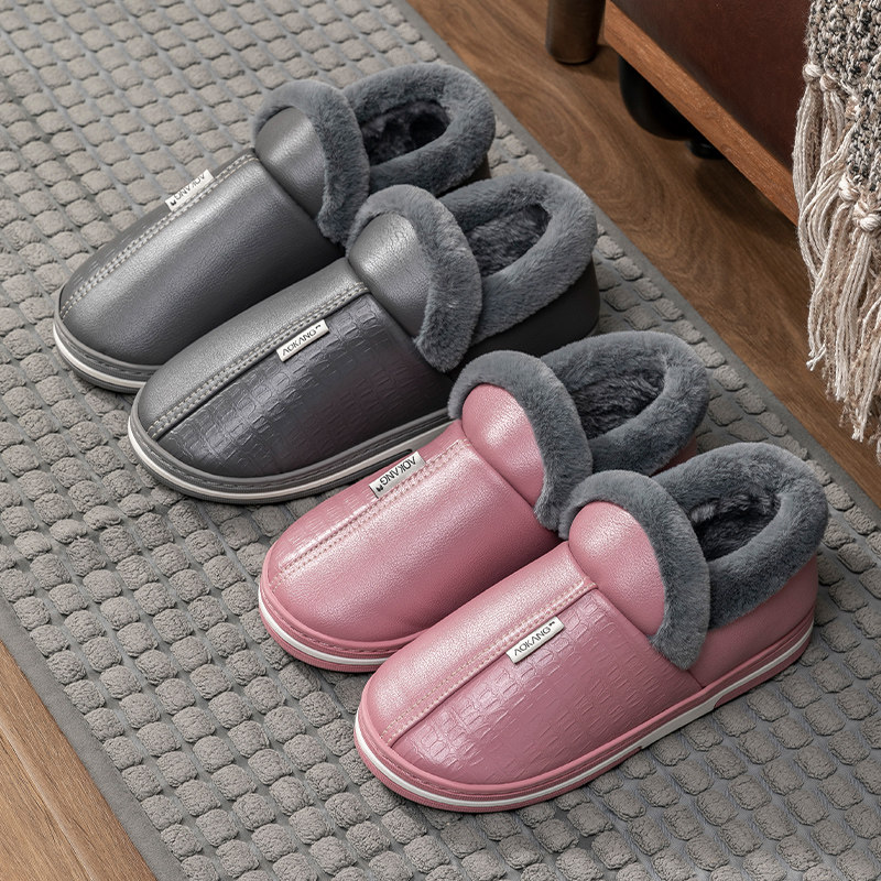 🔥👡冬季必备!奥康皮面棉拖鞋,男士冬季包跟毛毛居家用防滑防水保暖超值毛拖鞋👠