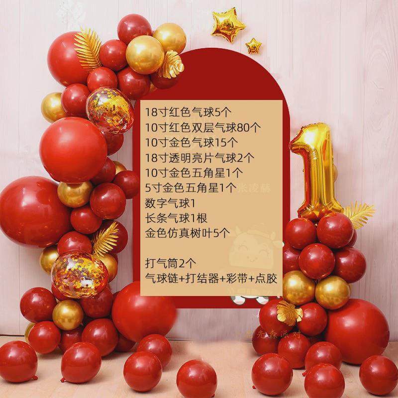 📚 喜庆红色气球链婚庆求婚布置中国风周岁宴场景装饰满月百日宴开业
