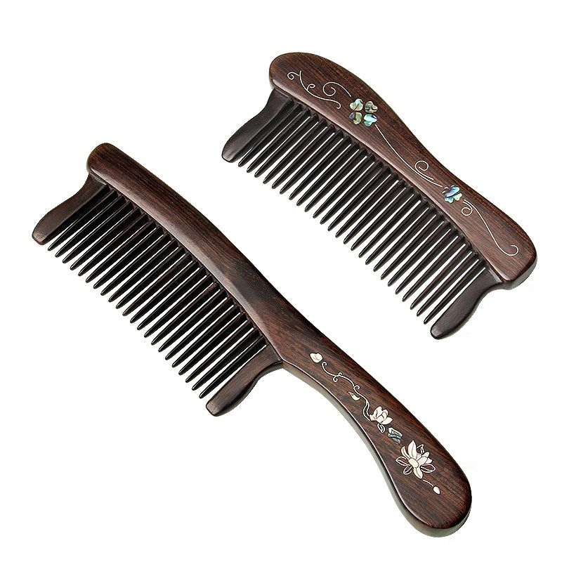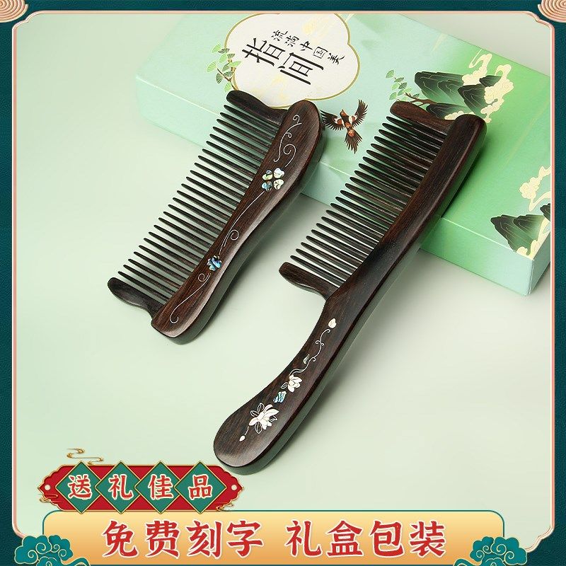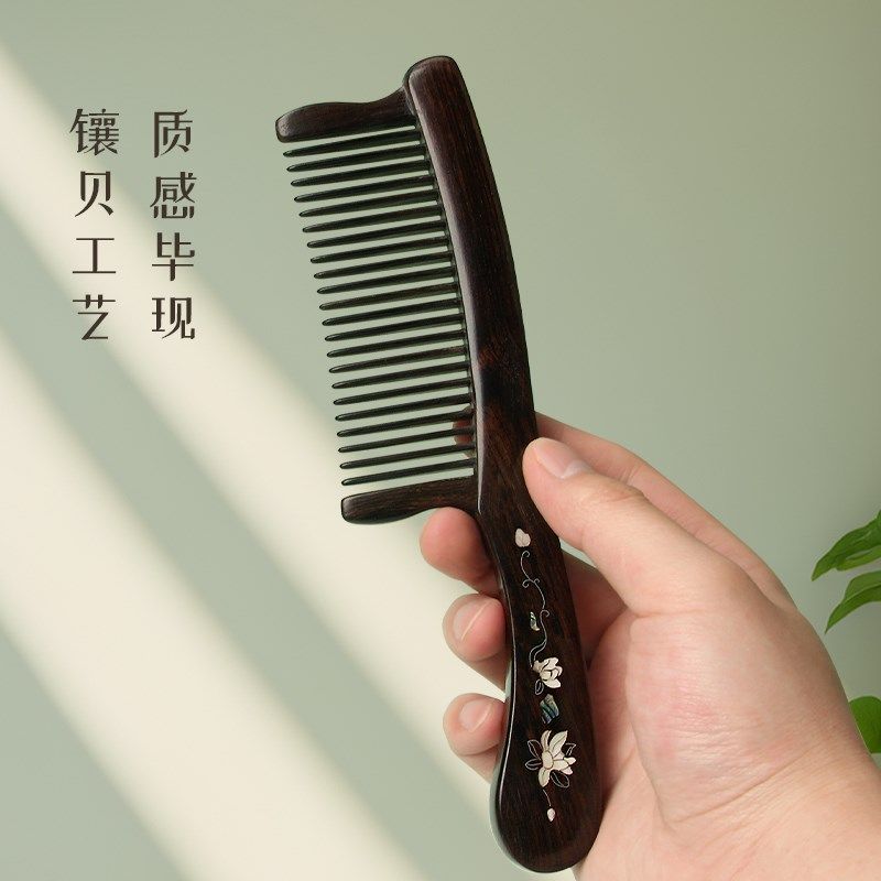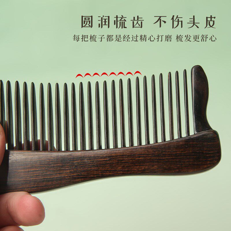 📚 黑檀木插齿梳子女长发专用家用宽B细齿加厚头部经络按摩木梳送礼