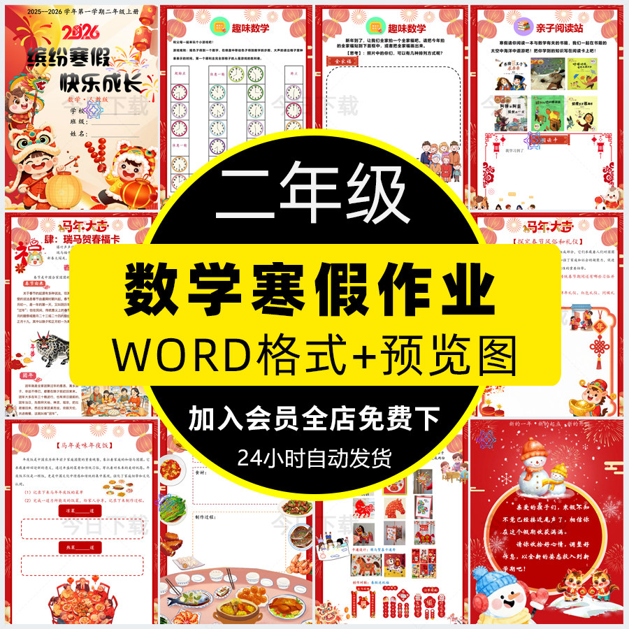 📚 马年特色数学寒假作业设计小学二年级实践作业手册word电子版模板