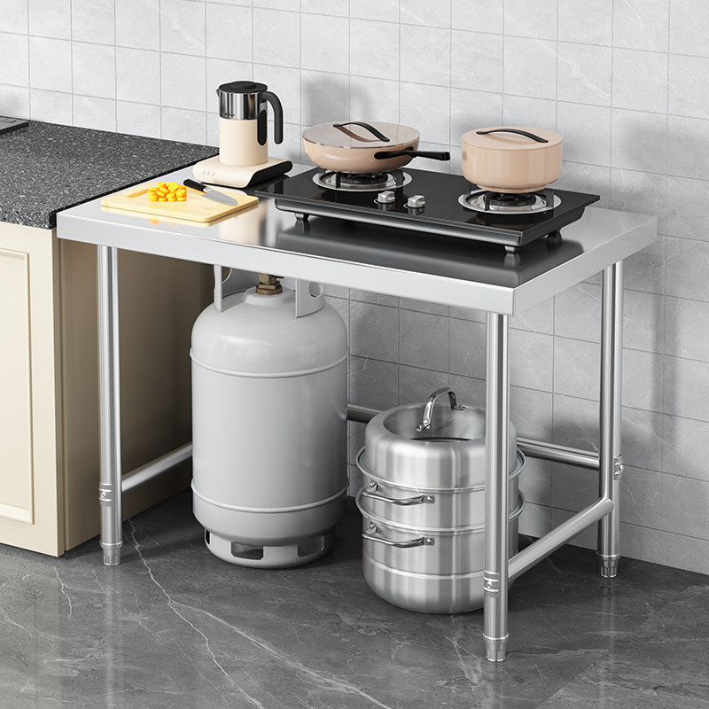 📚 单层厨房不锈钢工作台面饭店打荷切菜桌子煤气罐灶台架子落地支架