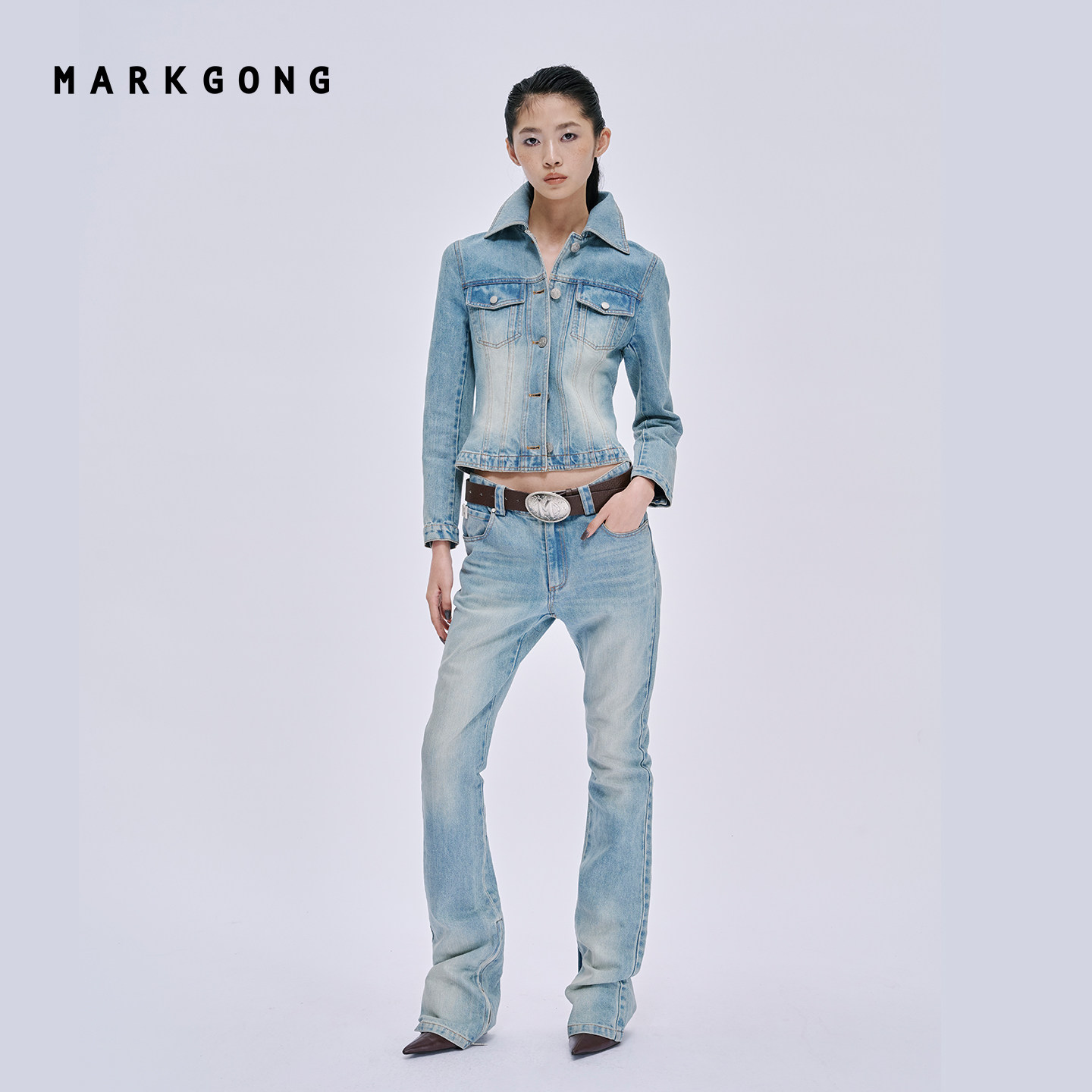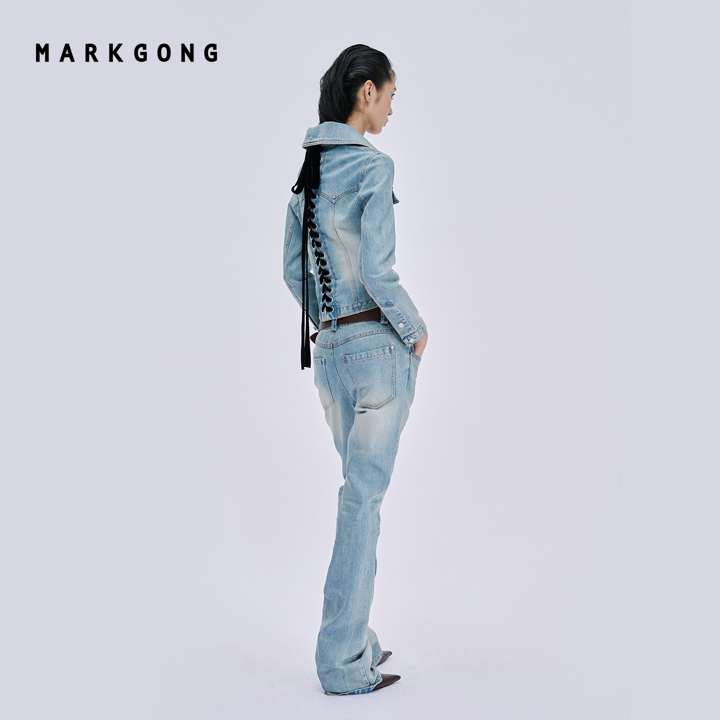 📚 白鹿同款【SALE】【MARKGONG】蓝色修身绑带牛仔外套流行秋冬休闲