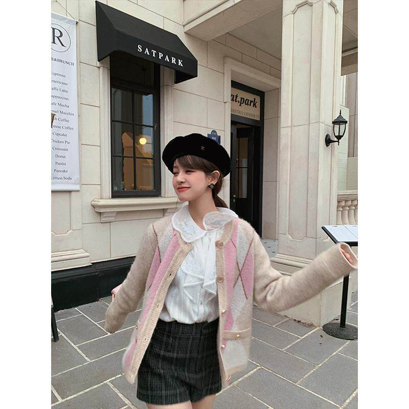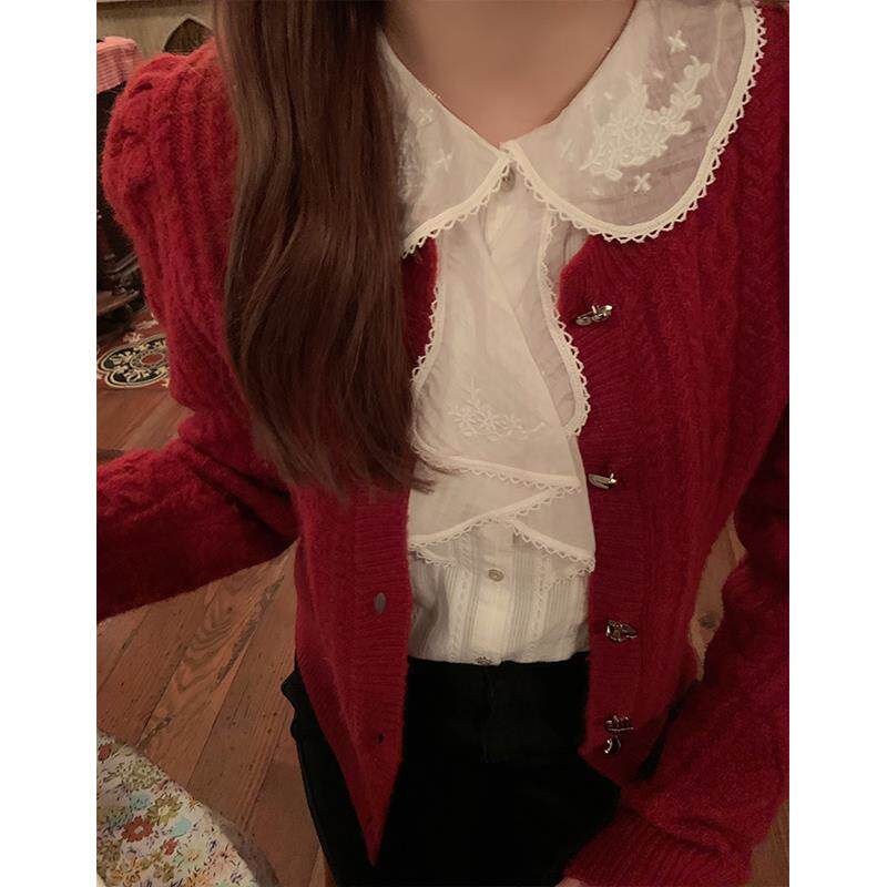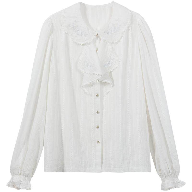 📚 cheriz法式娃娃领衬衫女秋季泡泡袖白色蕾丝甜美长袖小衫上衣