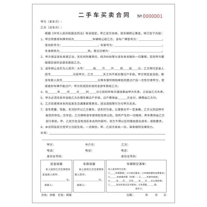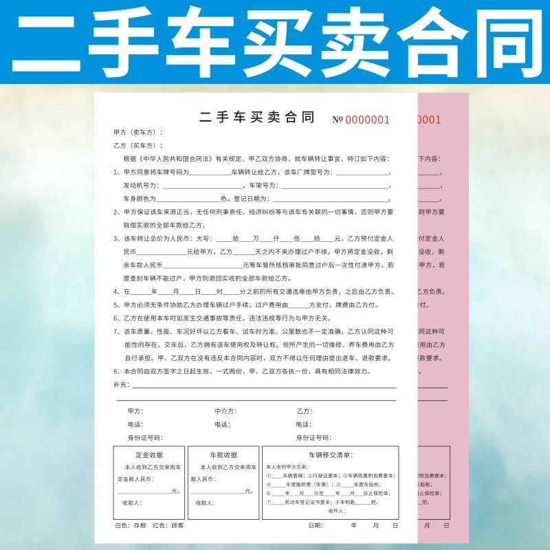 📚 二手车买卖合同定做机动车旧车交易协议销售购买出售大本两联订制