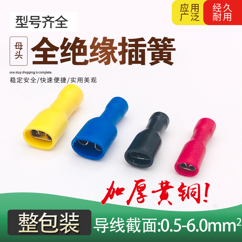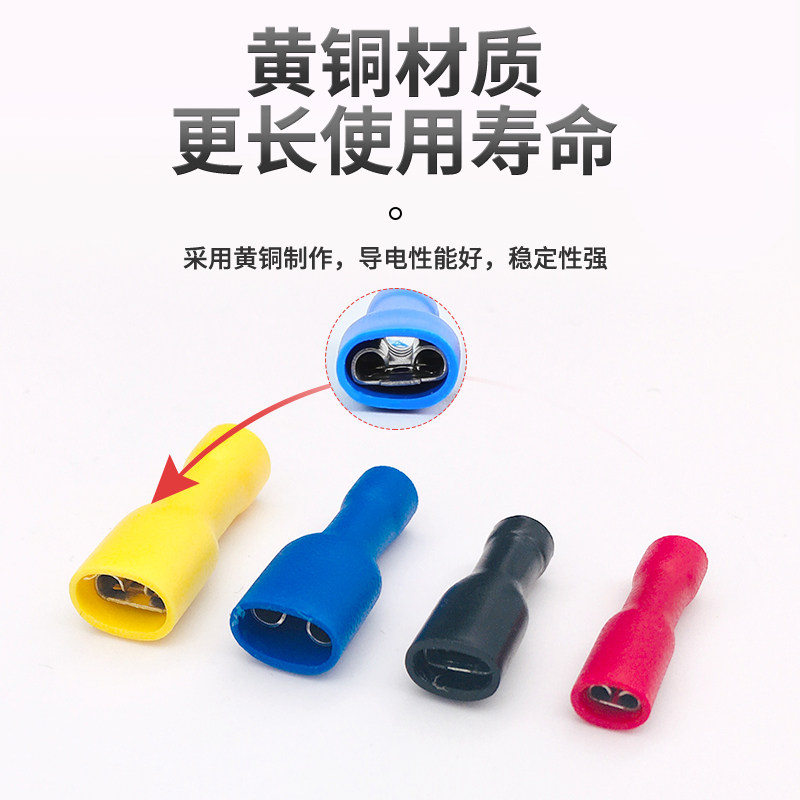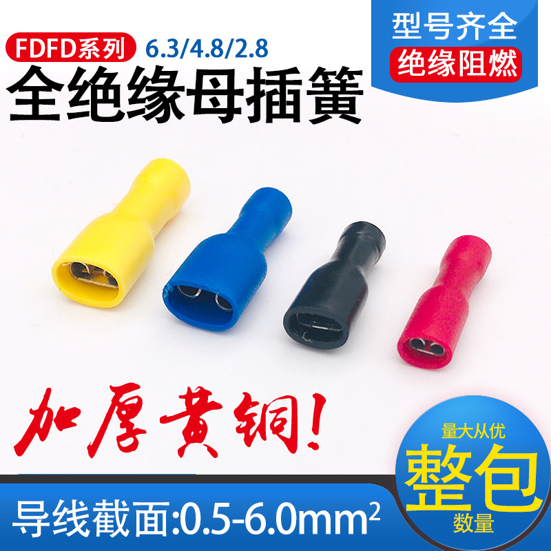 📚 2.8 4.8 6.3全绝缘母插簧冷压接线端子铜鼻FDFD1.25-110 187 250