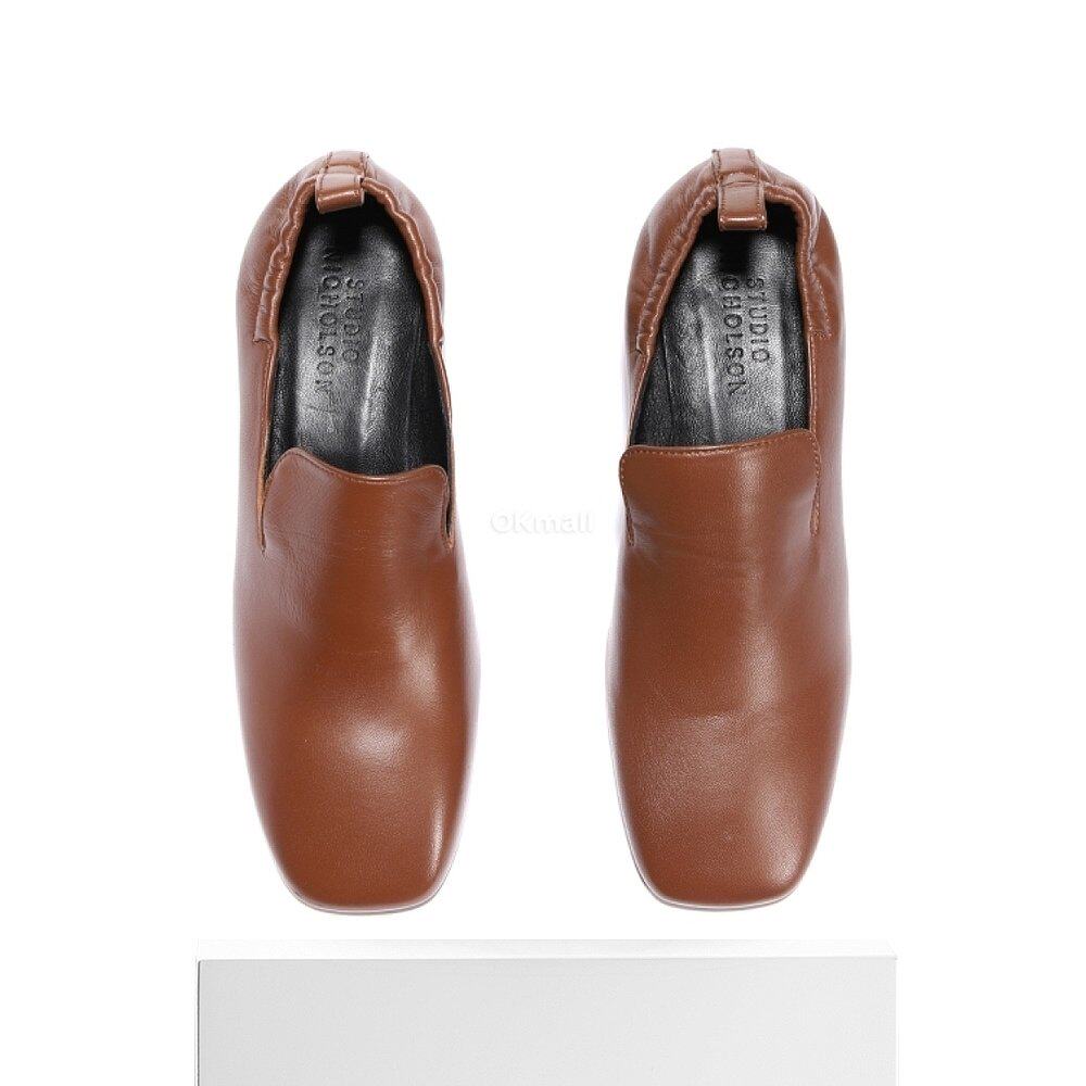 📚 韩国直邮studio nicholson方头粗跟高跟鞋女款棕色皮革1155
