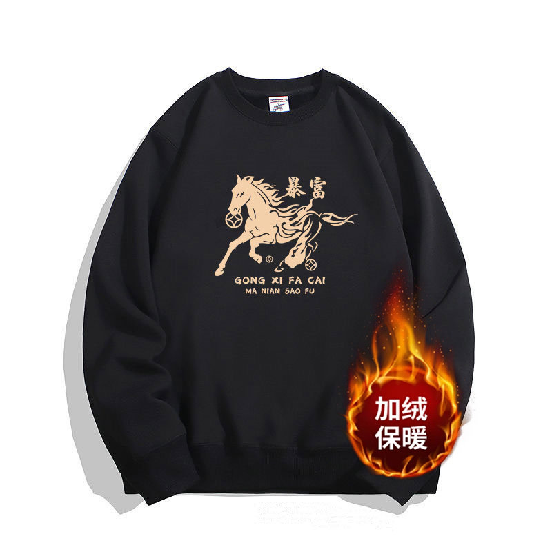 📚 马年马到成功流行情侣装2026新款加绒卫衣本命年红色系秋冬外套男