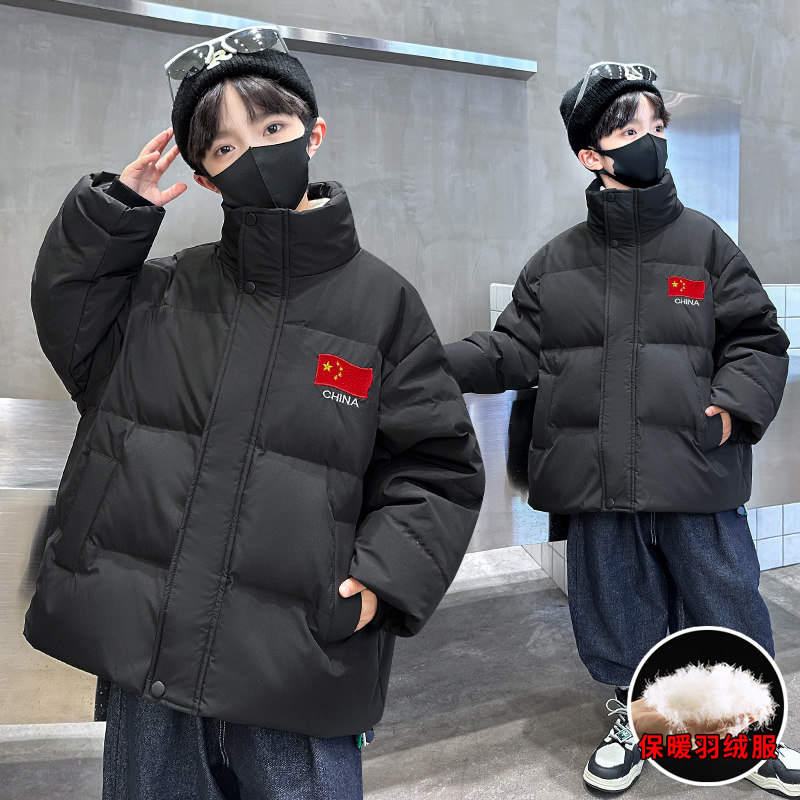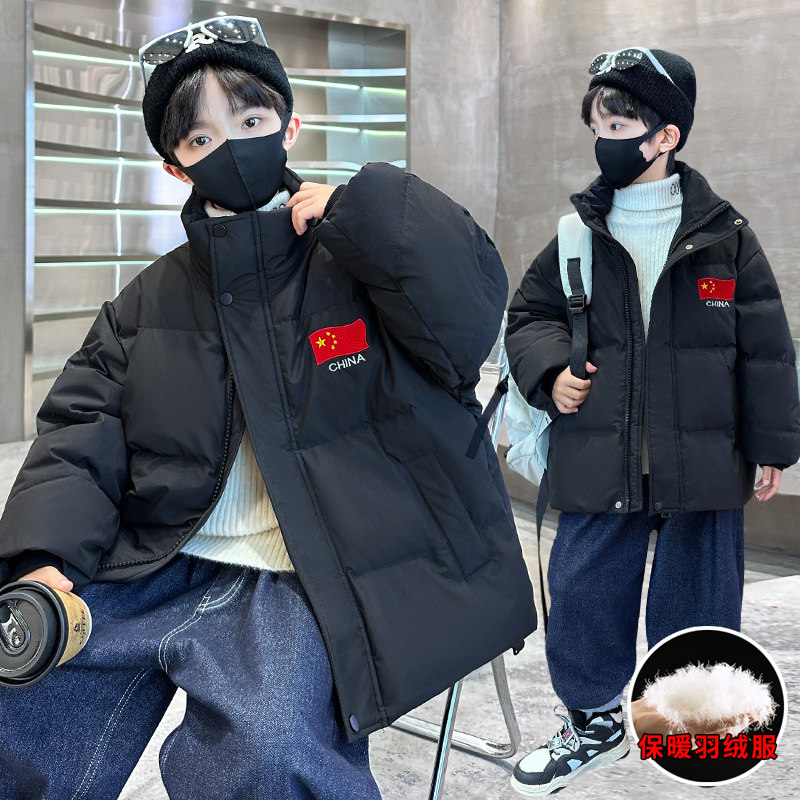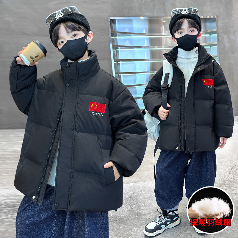📚 男童立领羽绒服儿童冬季白鸭绒加厚保暖外套中大童帅气黑色棉服潮