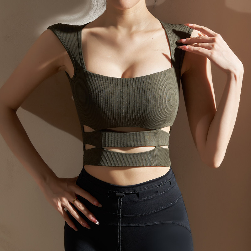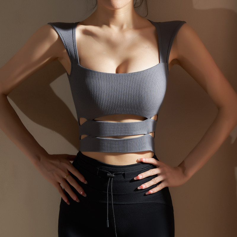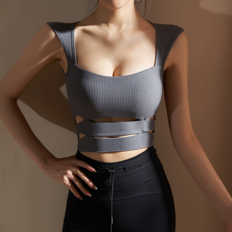 📚 yoyomeat性感条纹镂空无袖瑜伽背心速干裸感紧身健身文胸运动内衣