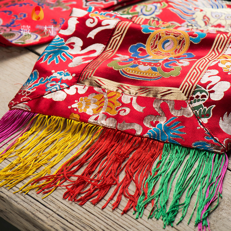 📚 尼泊尔手工装饰挂幡手工刺绣八吉祥竖幡对联红色款佛塔对联u.
