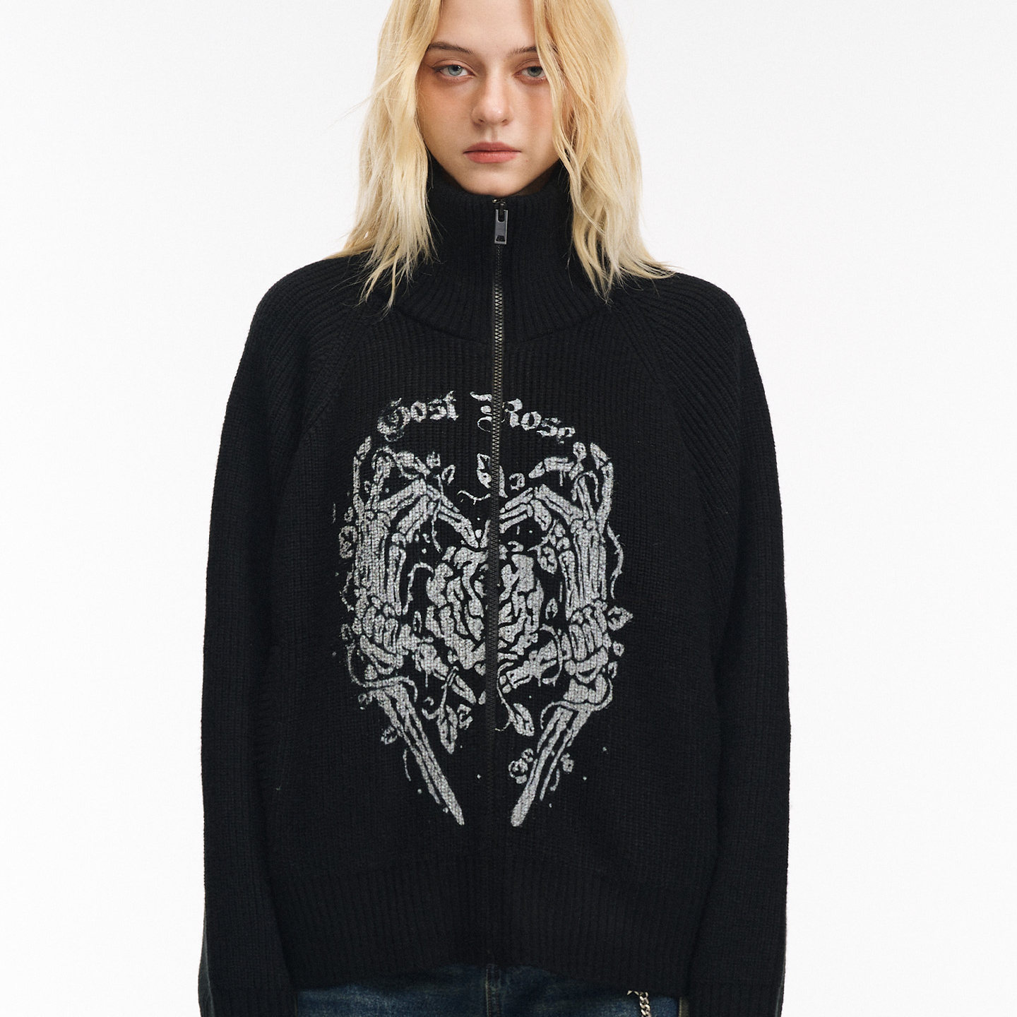 📚 GOST【王琳凯同款】骷髅玫瑰印花毛衣开衫外套潮牌