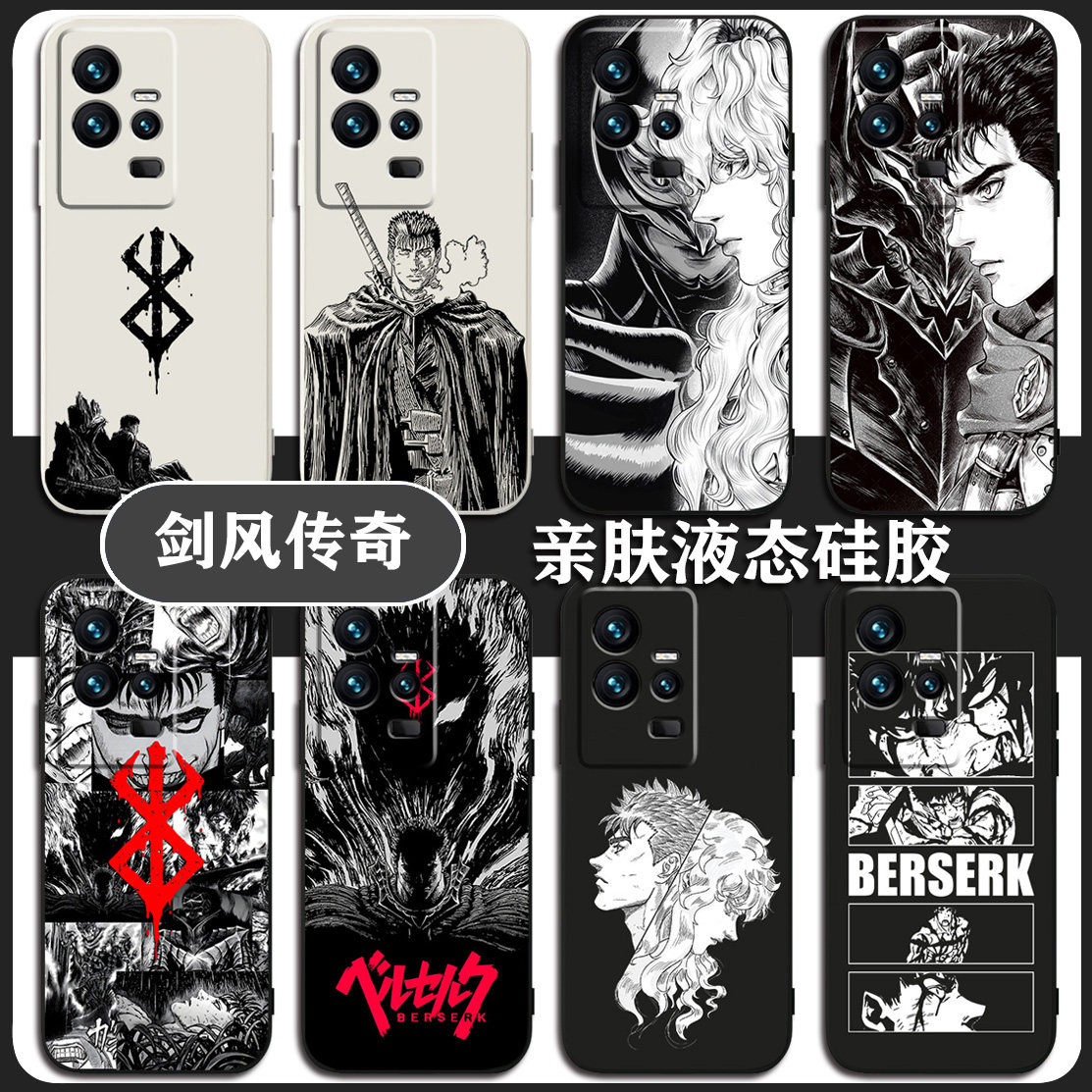 📚 Berserk剑风传奇适用vivo手机壳IQOO12/11s/pro+/Neo9S/8 Z6格斯X100/x90/X80液态硅胶S18/S19防摔y200i/Y35+